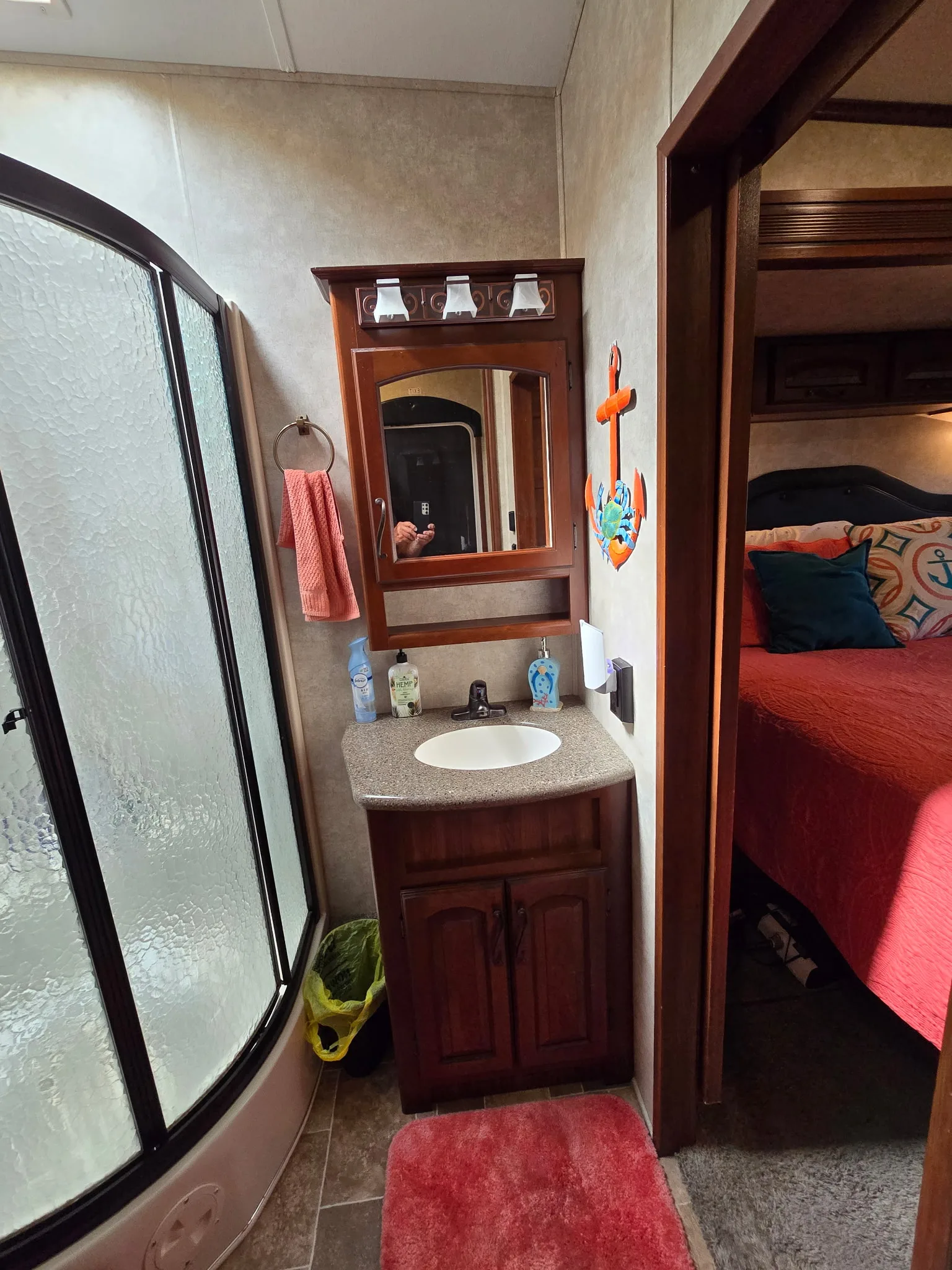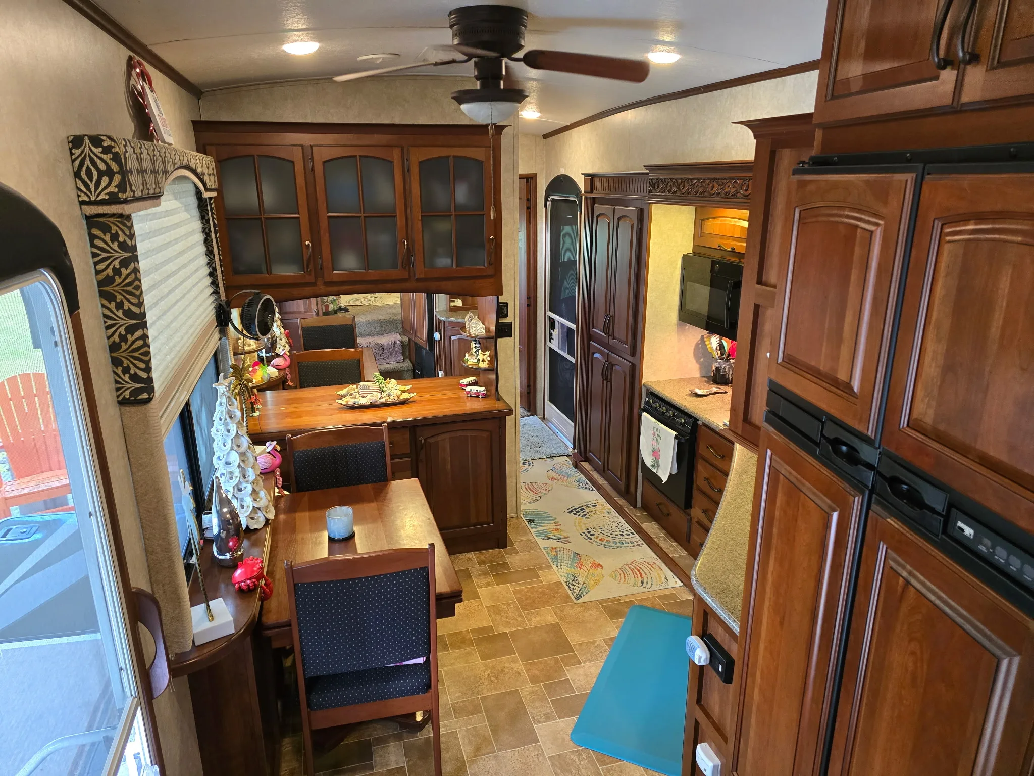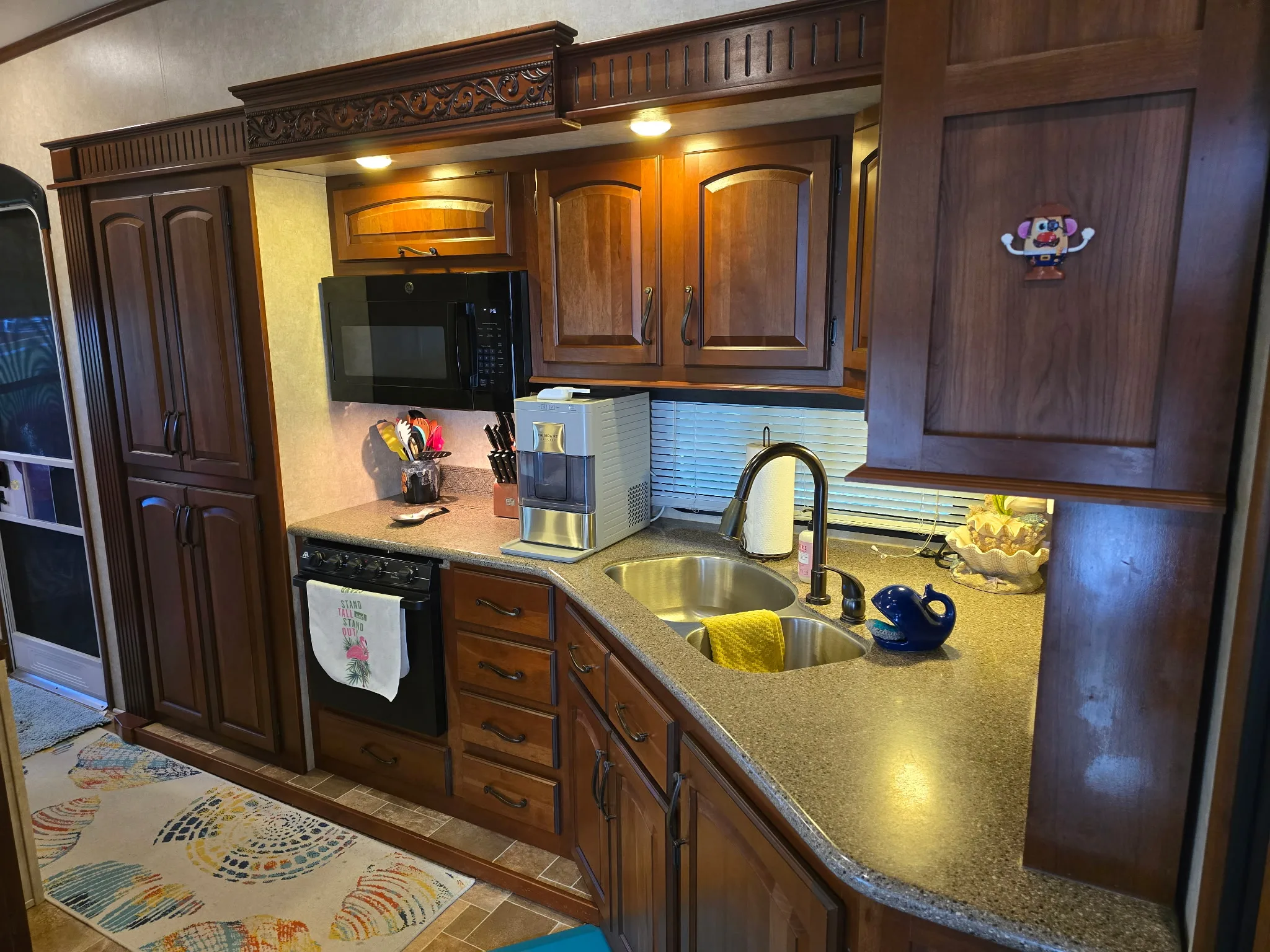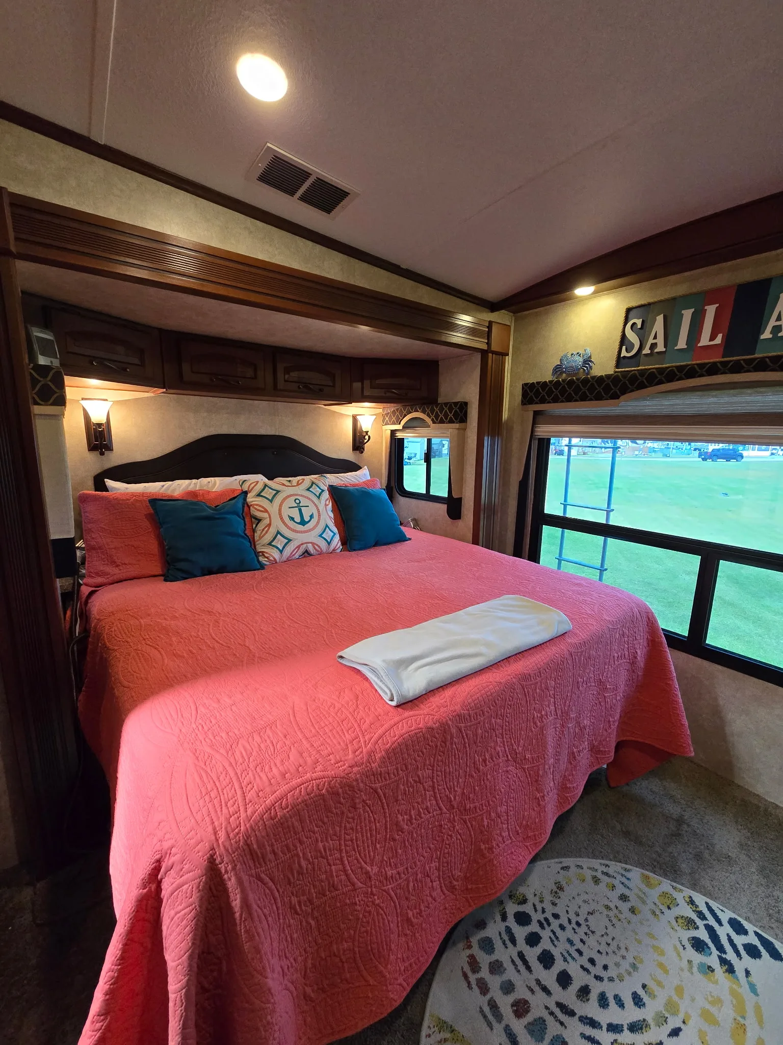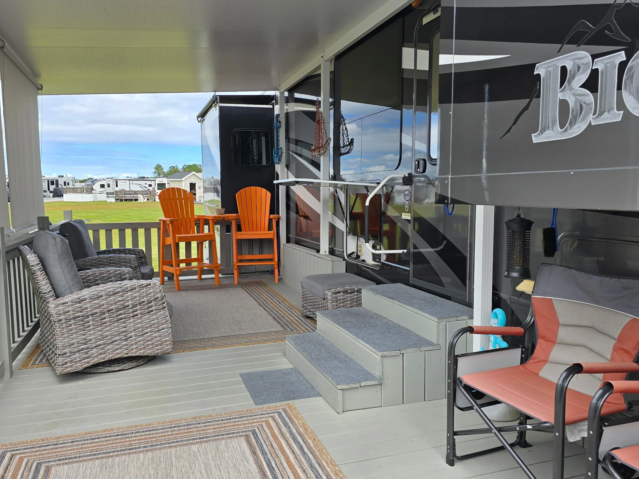 Montana 5th wheel that is full time living. Located at lot D-55 White Oak Shores Stella N.C. Will include furniture linens & kitchen dishes & utensils. Lot rent paid to April 2026.