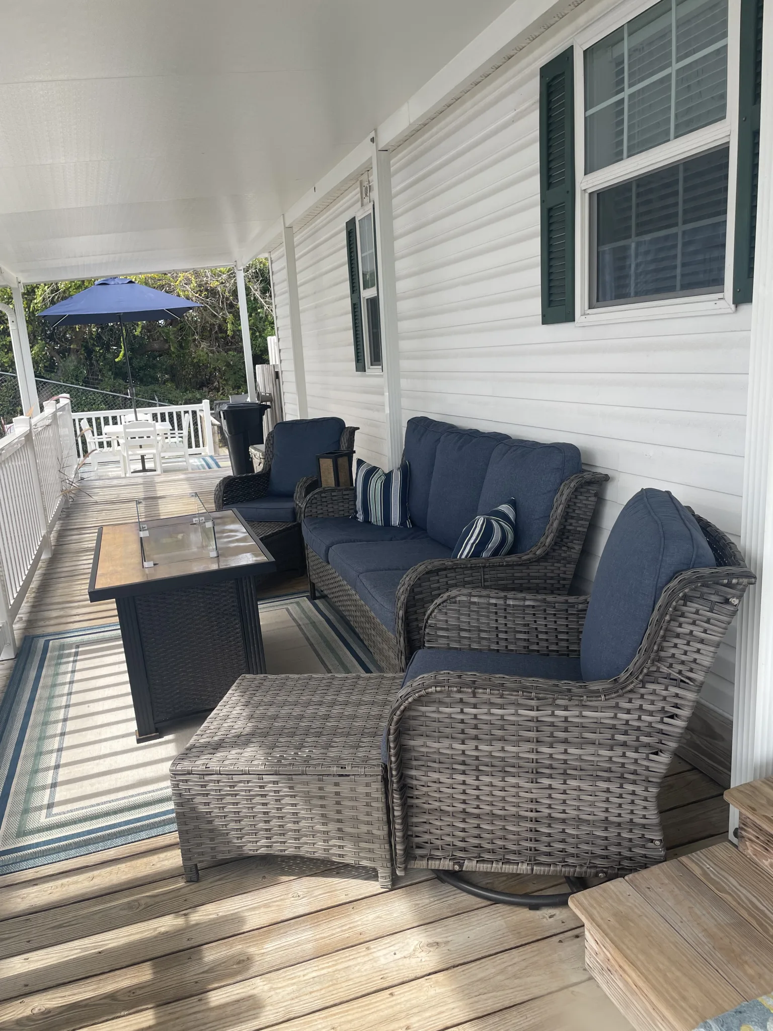 Beautiful park model in Emerald Isle RV Park (formerly Holiday Trav-L-Park). 1 bedroom, 1 bath with loft and sleeper sofa. Located on one of the larger lots (76B). Tastefully landscaped. All indoor/outdoor furnishings convey including grills, fire pit and golf cart.