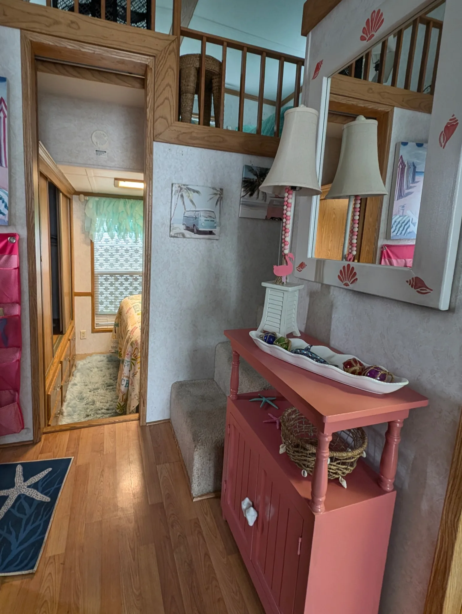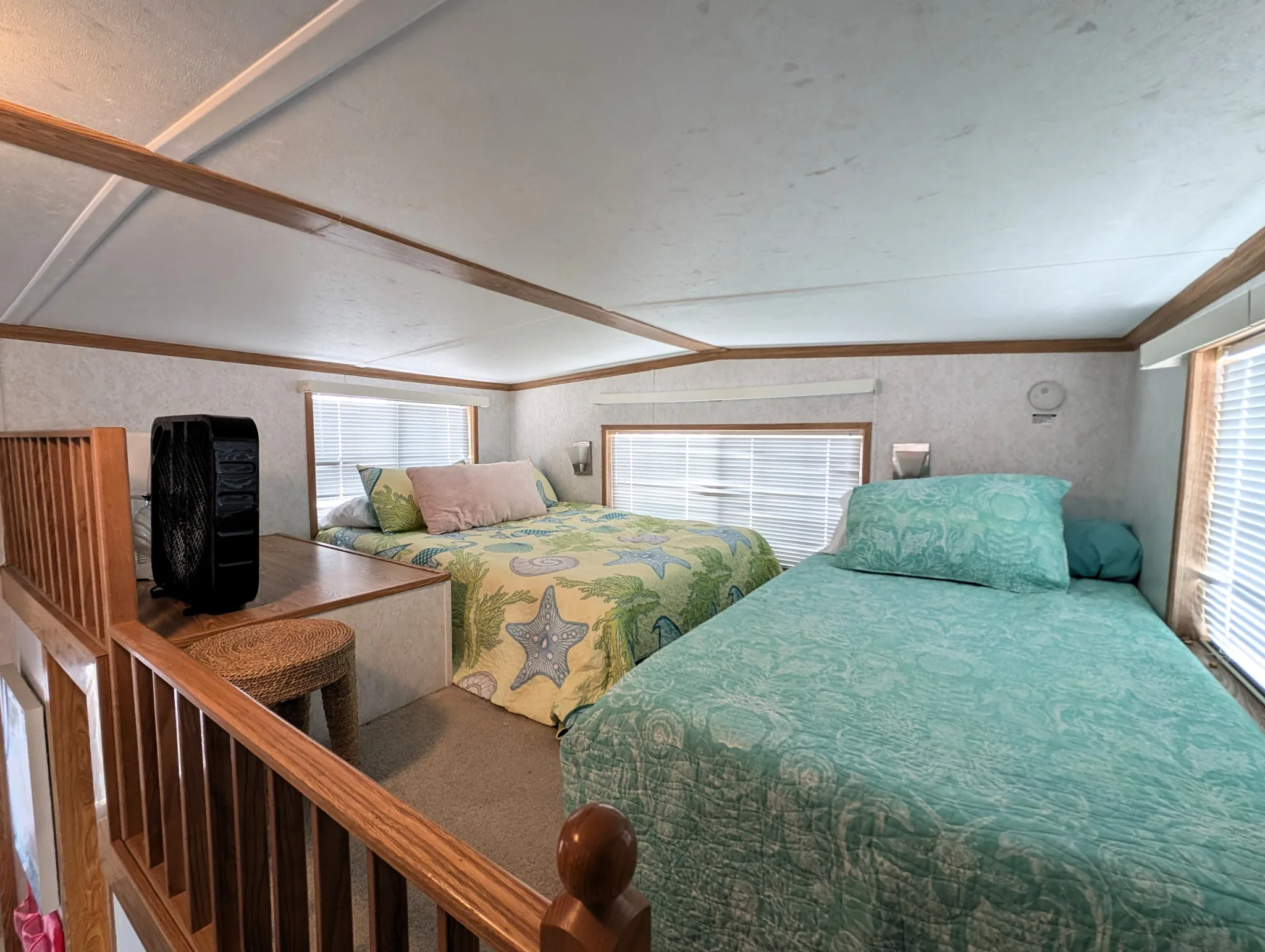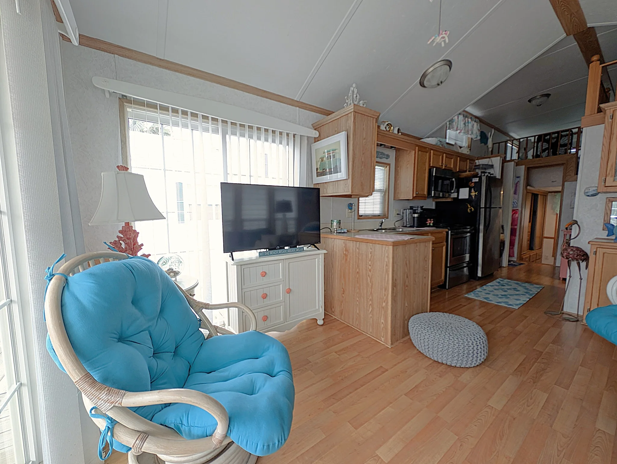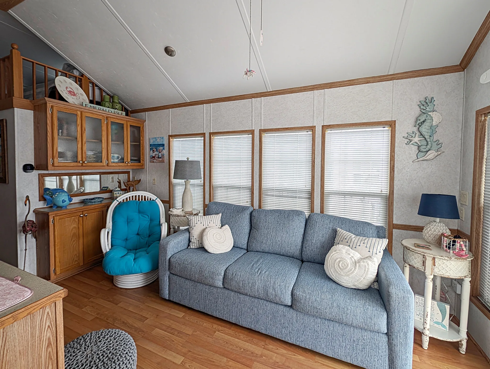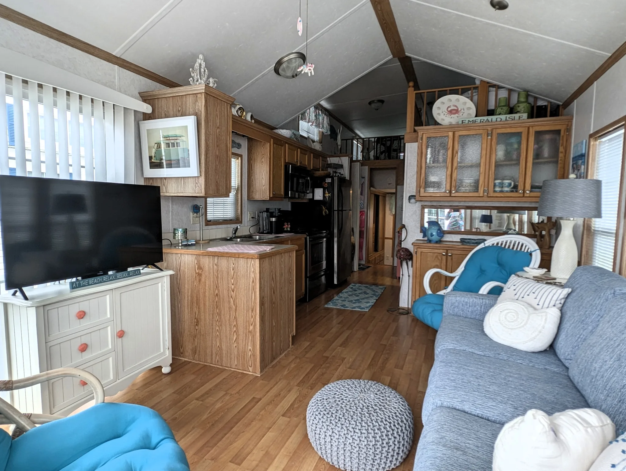 This fully furnished and recently updated 2008 Lee Park Model RV with dual lofts is located on the east side of the Boardwalk RV Park, an oceanfront, gated community in Emerald Isle, NC. Enjoy magnificent ocean views from the covered porch of this 2nd row unit that is only 150 feet from a private beach entrance accessible only to residents of the Boardwalk RV Park. Just a few blocks away from the Emerald Isle bridge, this prime location allows you to avoid busy island traffic but is still conveniently located within a mile of restaurants, shops, a movie theatre, putt putt golf, walking/biking trail and giant water slide attraction for the kids. This highly coveted park is one of the few on the island open year round so come and live your dream at the #1 rated beach in NC!