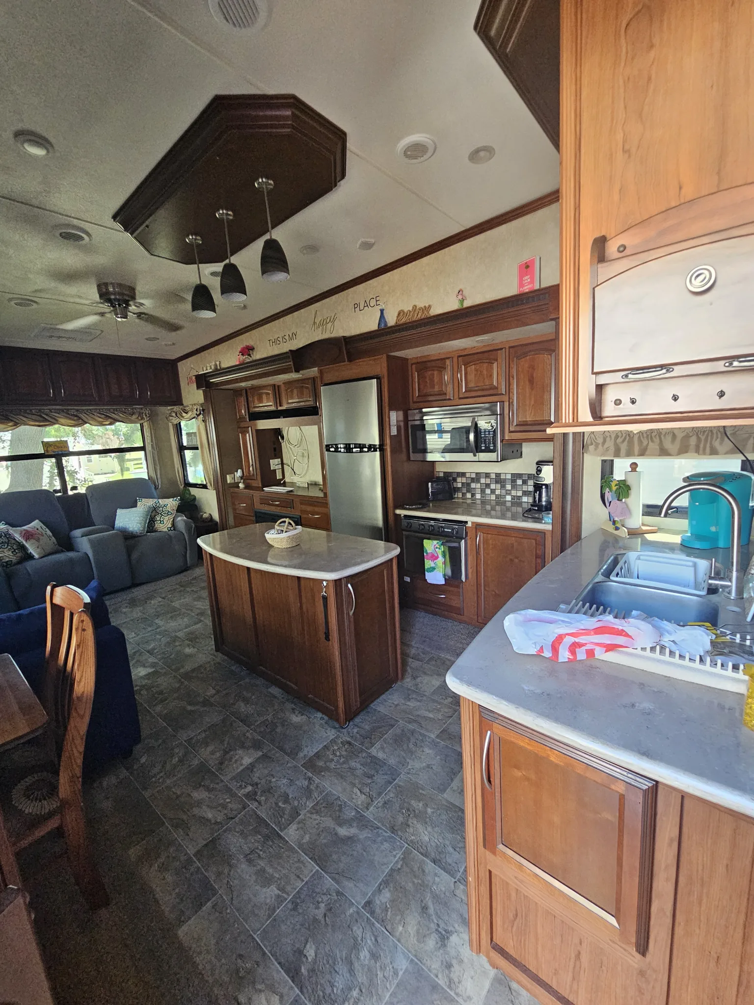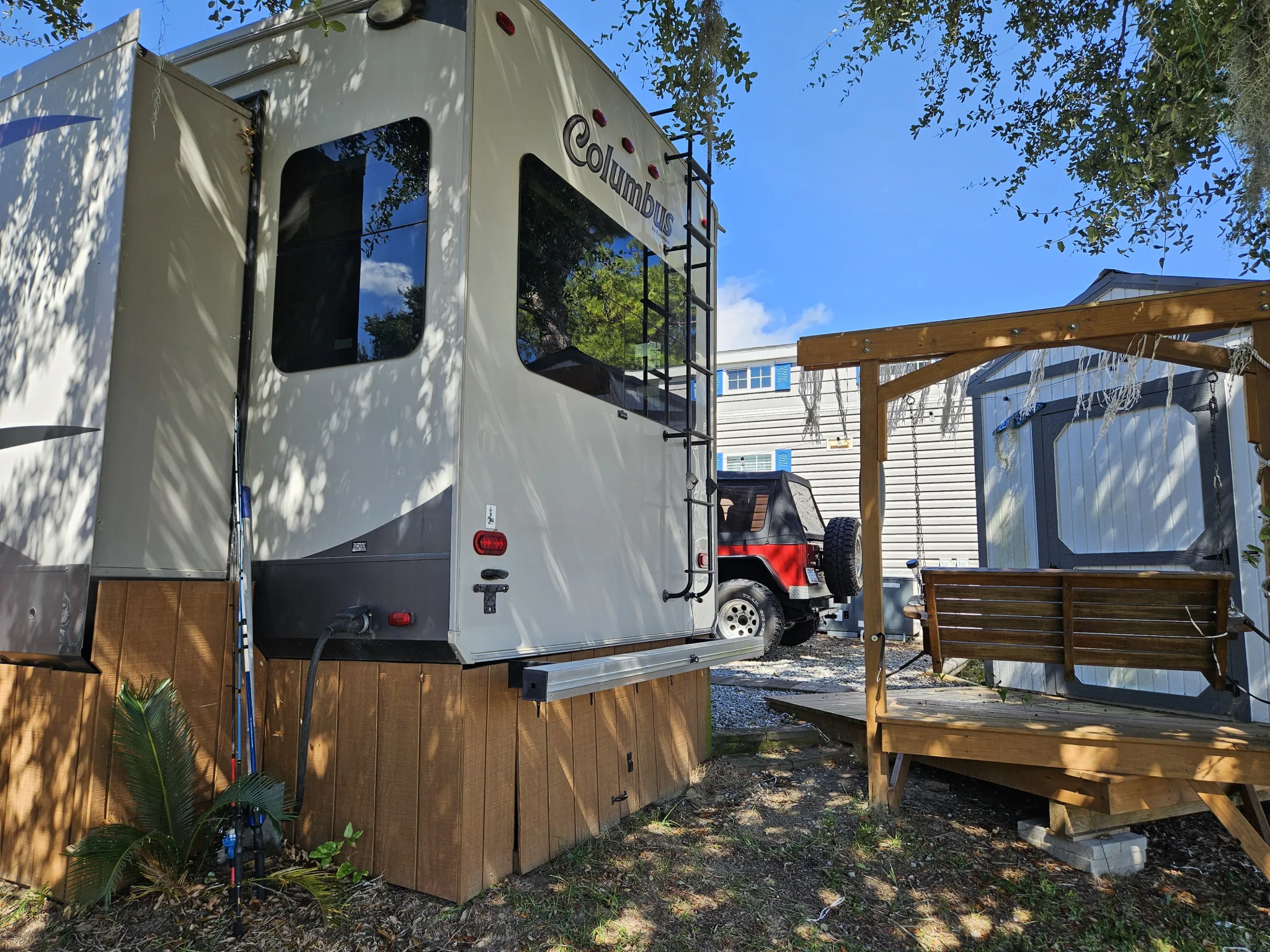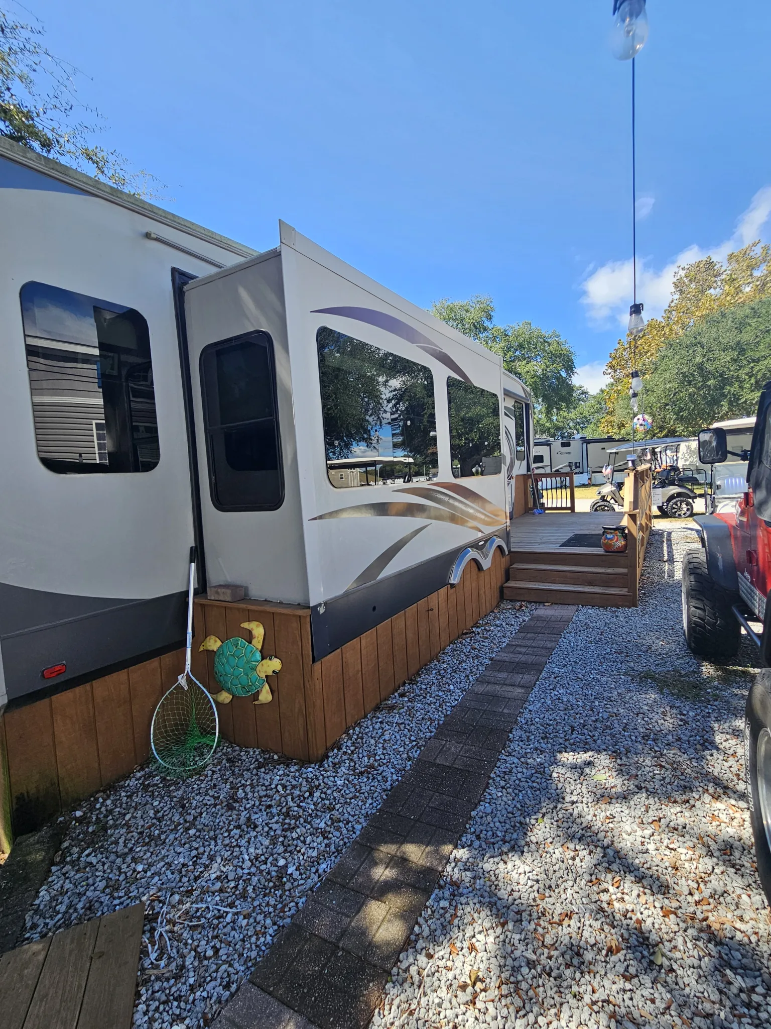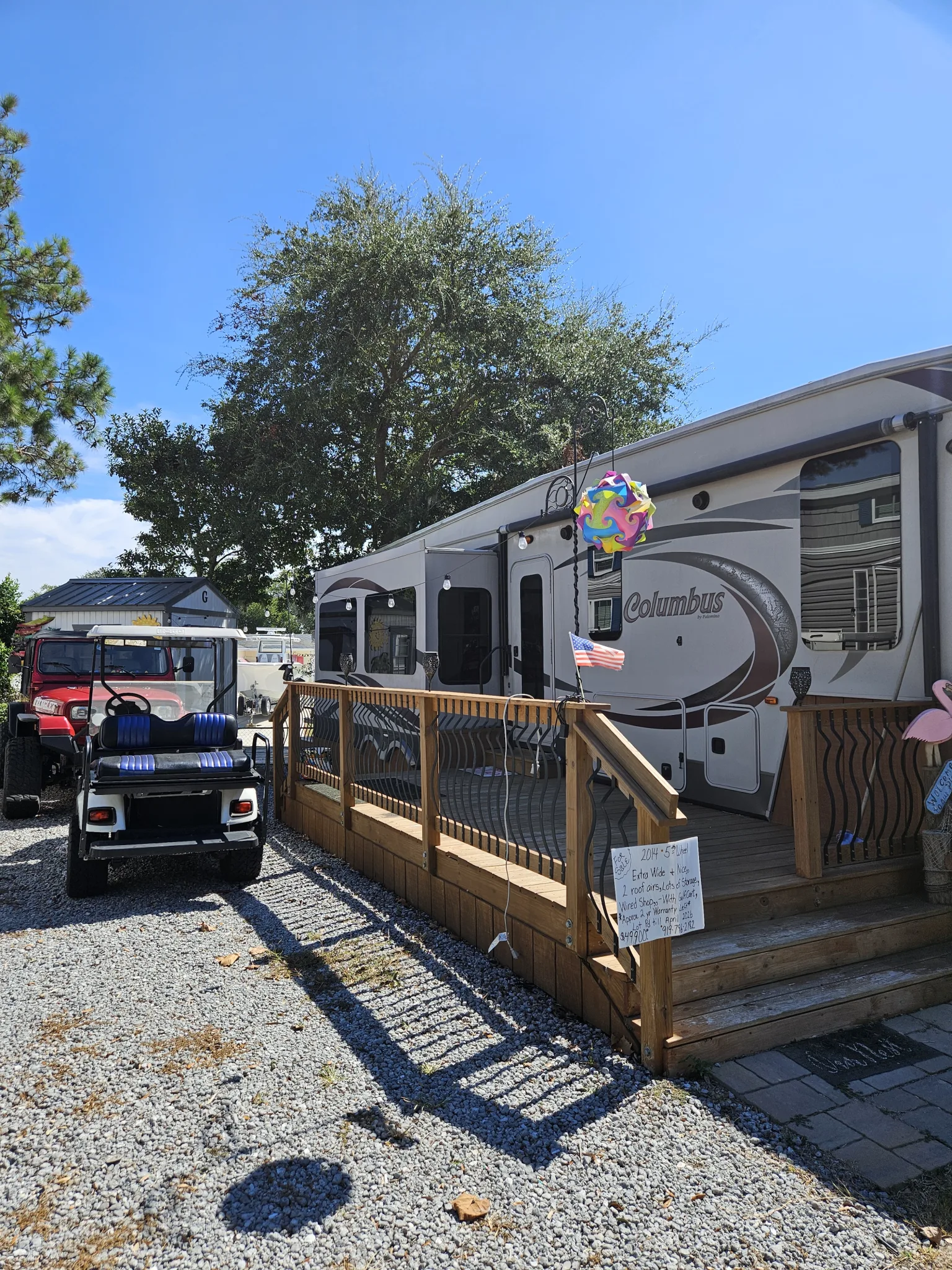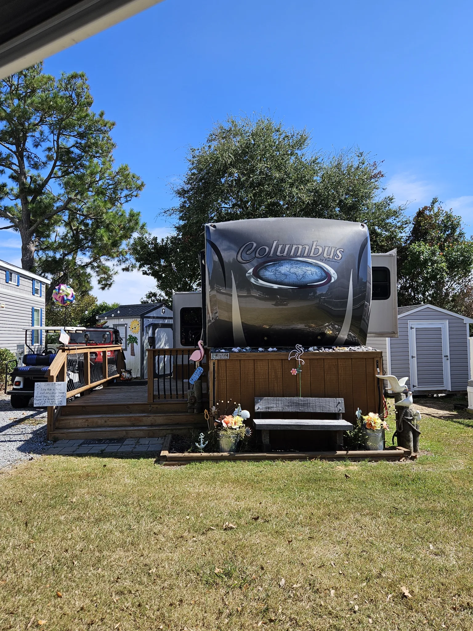 2014 Columbus 5th Wheel. 2 roof airs, Lots of storage inside and outside.2 decks. Gravel driveway. Wired shop. EZGo golf cart included. Lot rent paid until April 2026. Goose Creek Resort is a great family park. Has it’s own boat dock and fishing pier. Bring your paddle boards or kayak for some water fun OR go to the pool which has a water slide. Fun for all!!