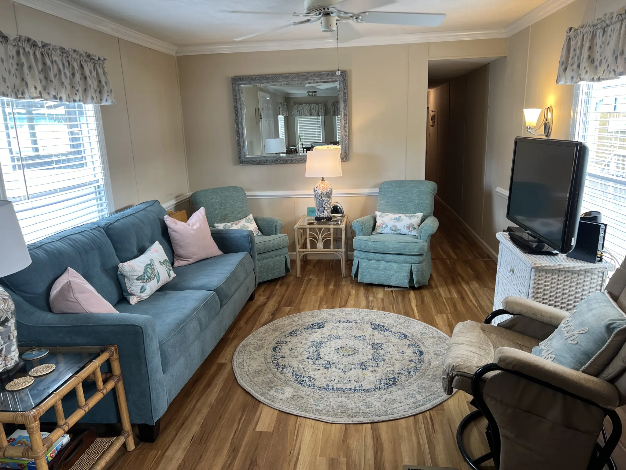 The home is a rare 3 full bedrooms, 2 full baths with a remodeled kitchen which has a large work island, tons of living room seating & sleeper sofa. Master has a queen bed, 2nd bedroom has a queen, and 3rd bedroom has bunk beds.