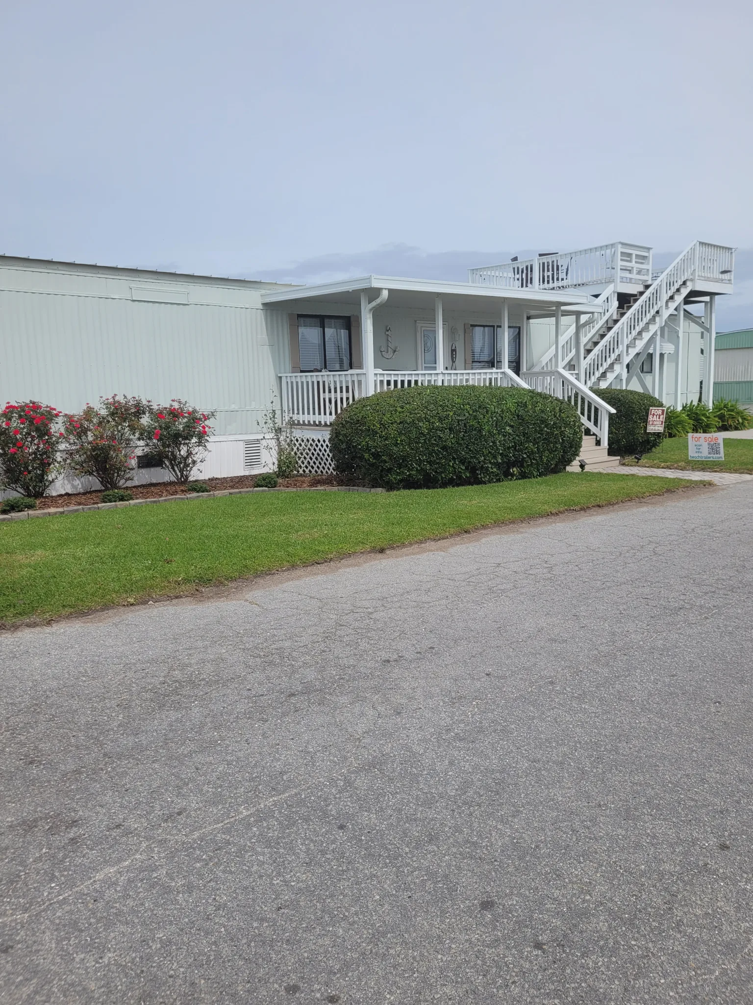 1980 mobile home 2 bed 2 bath plus pull out queen sofa bed fully furnished front porch facing canal roof top deck with sound and atlantic beach bridge views lot rent 11,000 year includes water sewer trash and cable lot rent paid through january 2026. i will pay transfer fee. price drop $169900.00