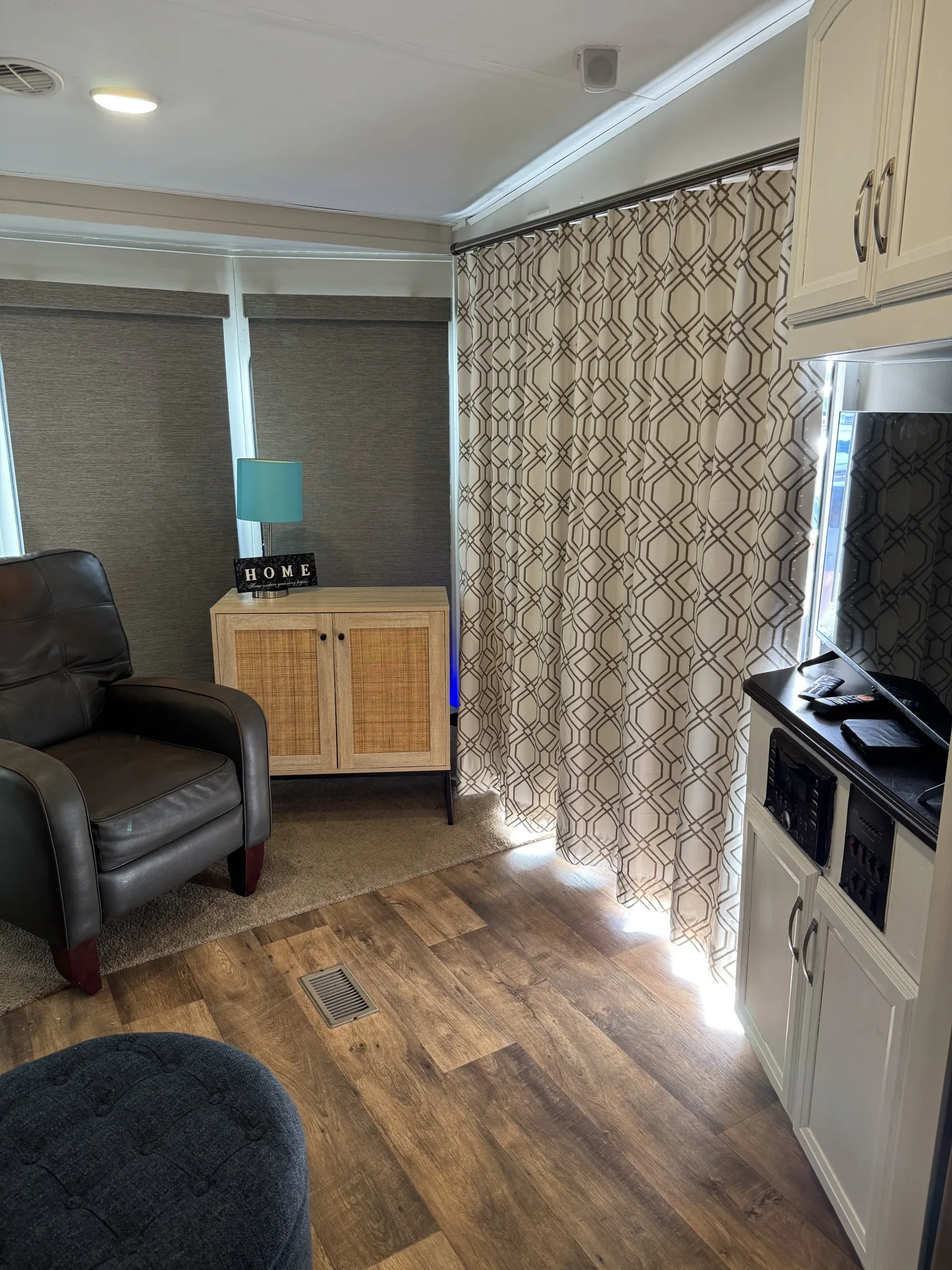 - Black out curtains on sliding door for extra privacy
