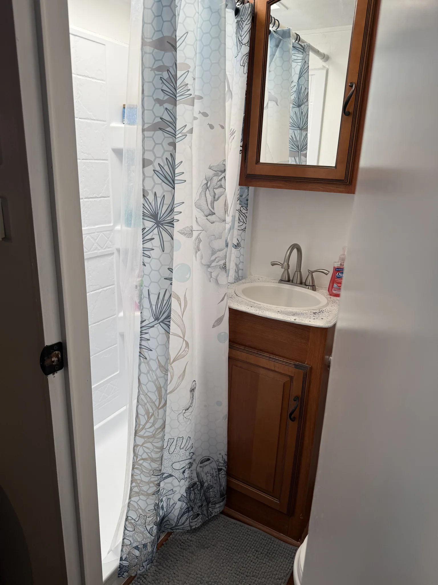 •Full bath w/ stand up shower and residential toilet