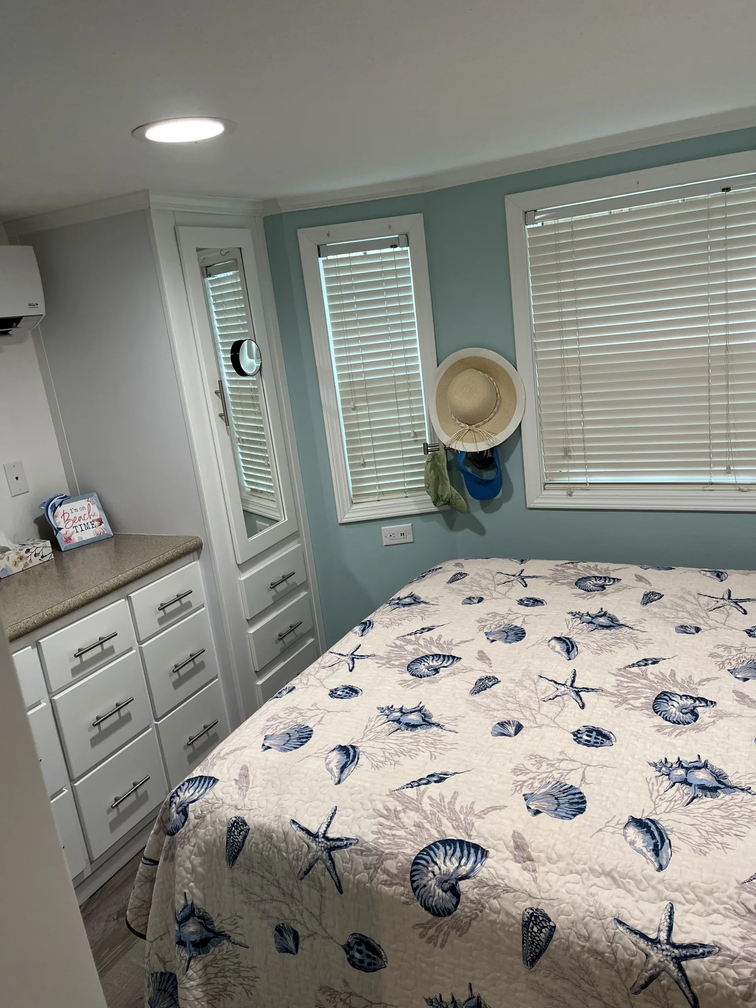 - Queen bedroom, Double loft with partition, Open kitchen/den. 3 AC minisplit units, Large open deck, Large storage wired bldg with room AC. Community boat ramp in park. Boat storage lot and boat slips in park for extra fees. Short boat or ferry ride to Cape Lookout and Shackleford Banks. Lot has ample parking for 2 or 3 cars. Asking $98,000 or best offer.