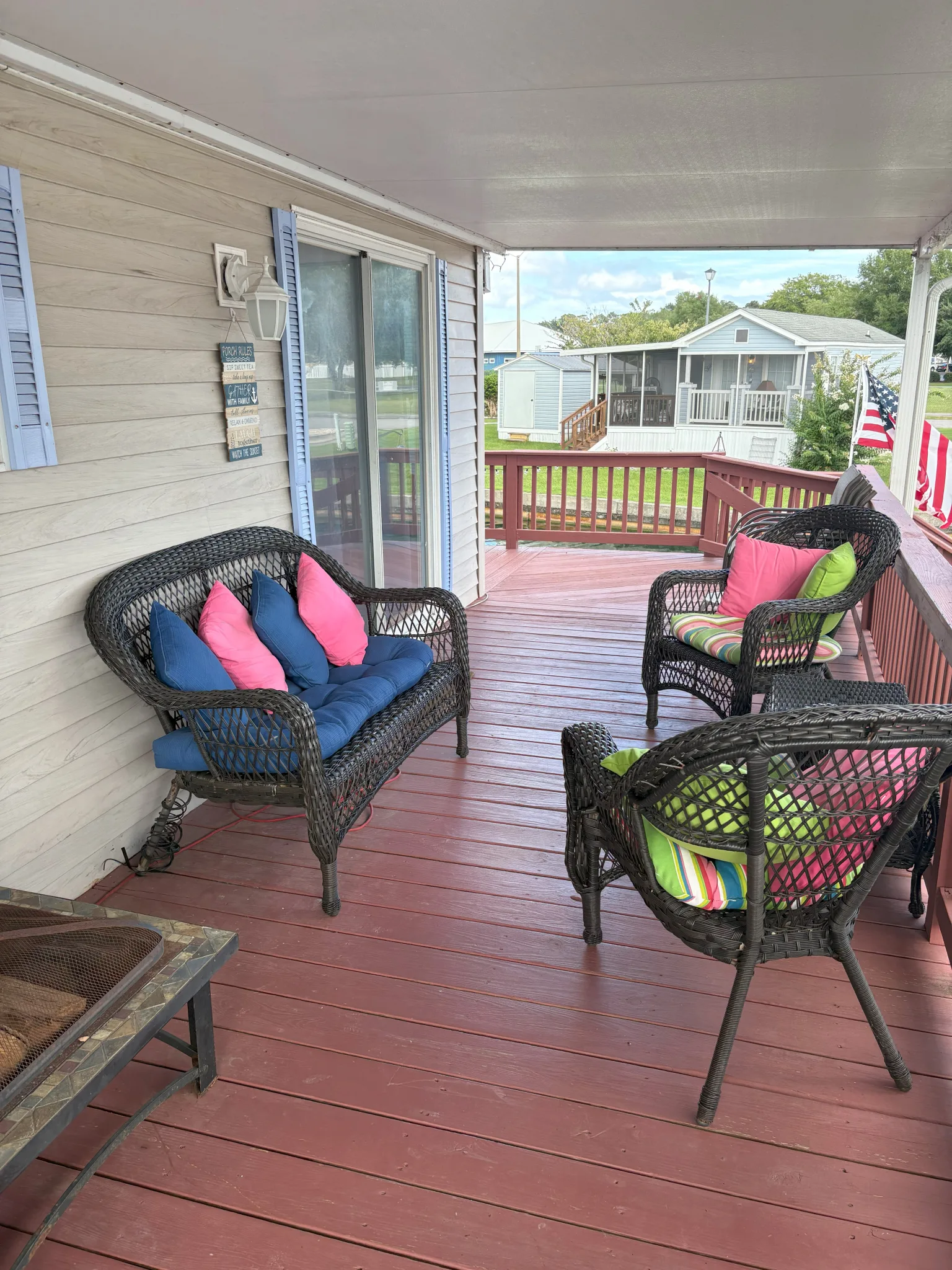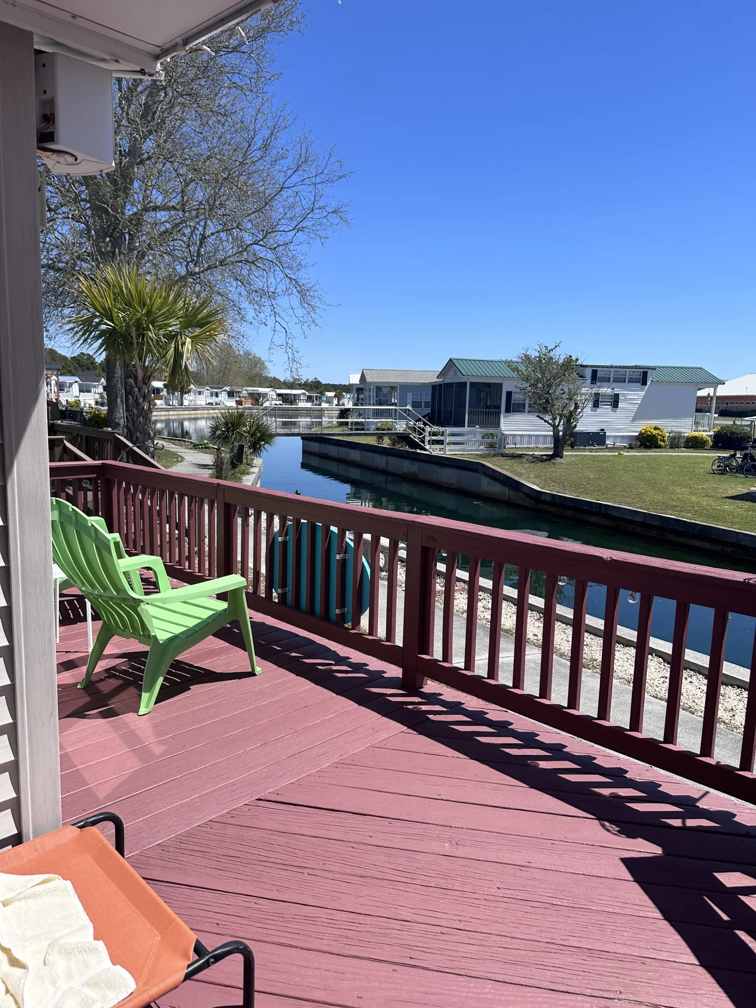 Ready to turn every day into a vacation? This 2 bed / 1 bath park model home sits right on the pond at Goose Creek Resort – perfect for fishing in your PJs, sipping coffee with water views, or just relaxing in pure coastal bliss. The ICW waterfront with AMAZING sunsets is less than 200 yards away in your golf cart!