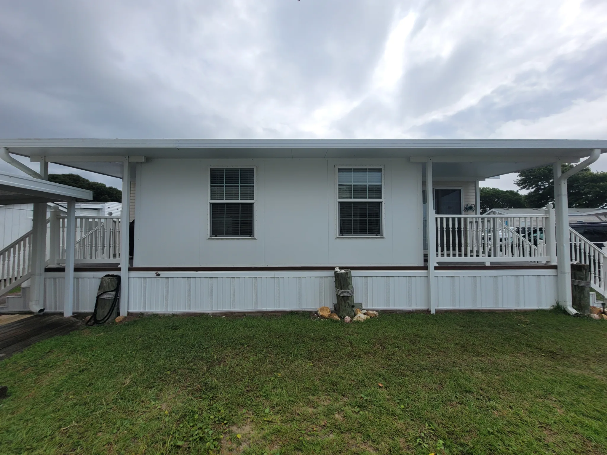 • Covered front and back Trex decks with vinyl handrails
