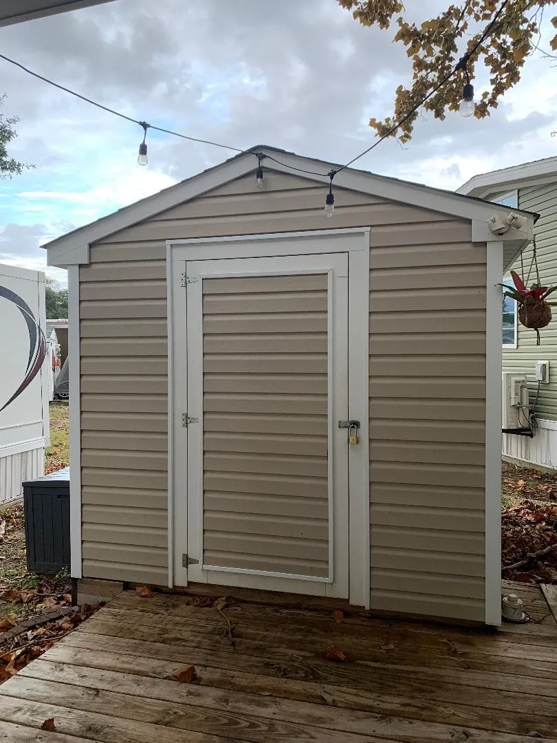 2020 Canvo Park Model. Located at Goose Creek Resort. Lot rent paid until April 2026. Sits on big corner lot H13. Includes 8X10 barn, aluminum awning, 2010 Club Cart, central heat and air – 2-ton unit. Furnished inside. Asking $130,000 OBO. Call Michael for details or to setup a time to view 919-330-8901.