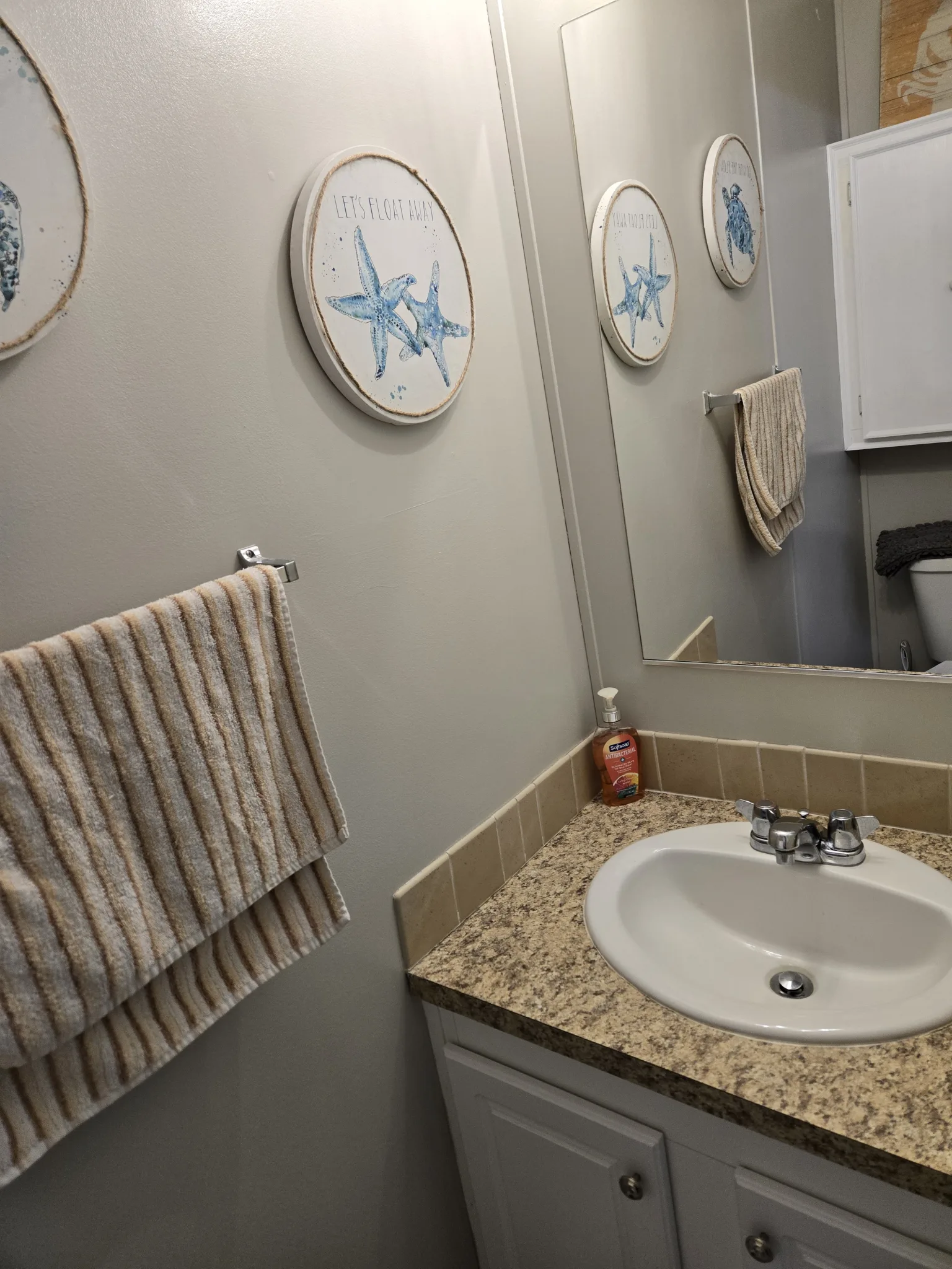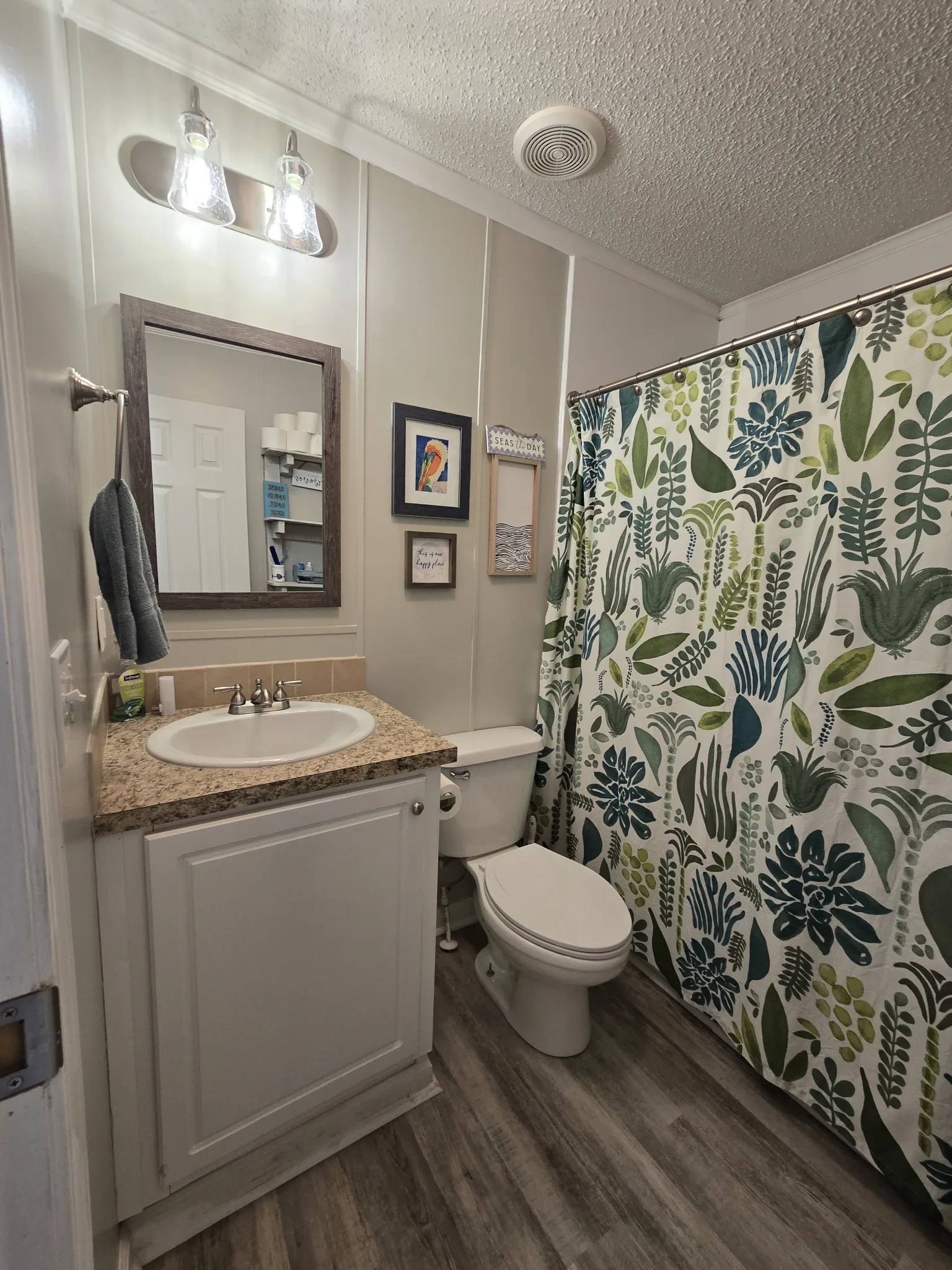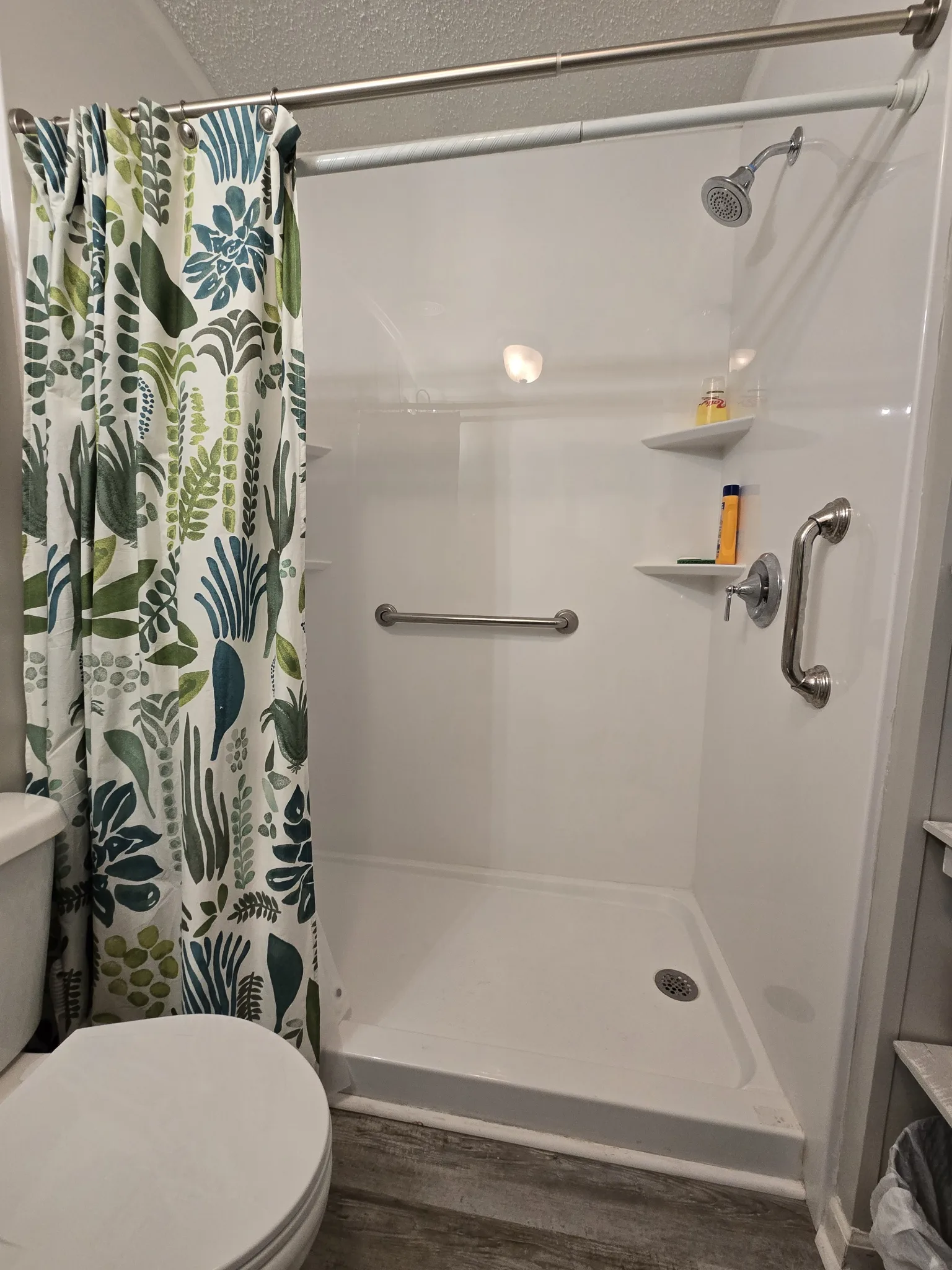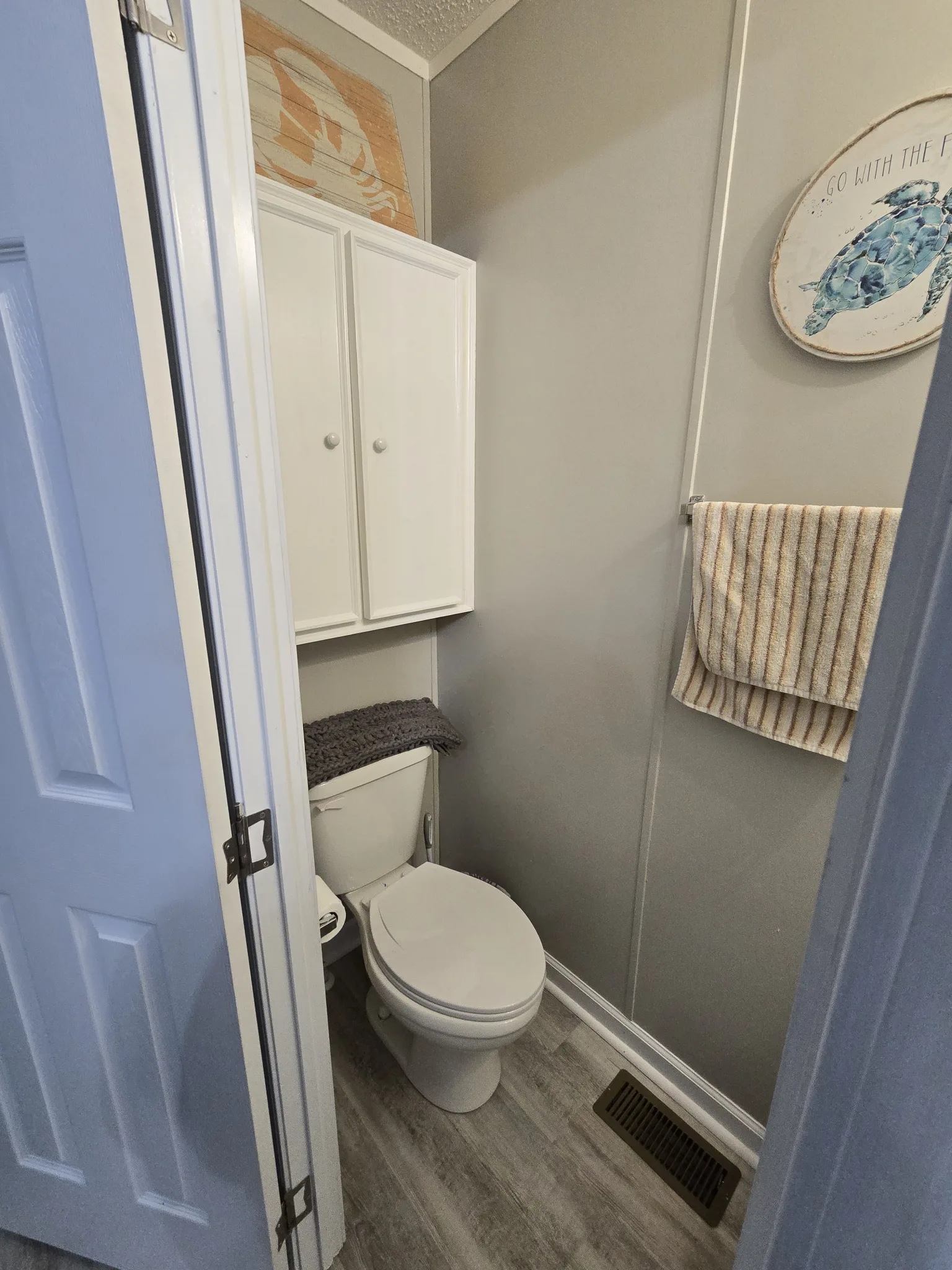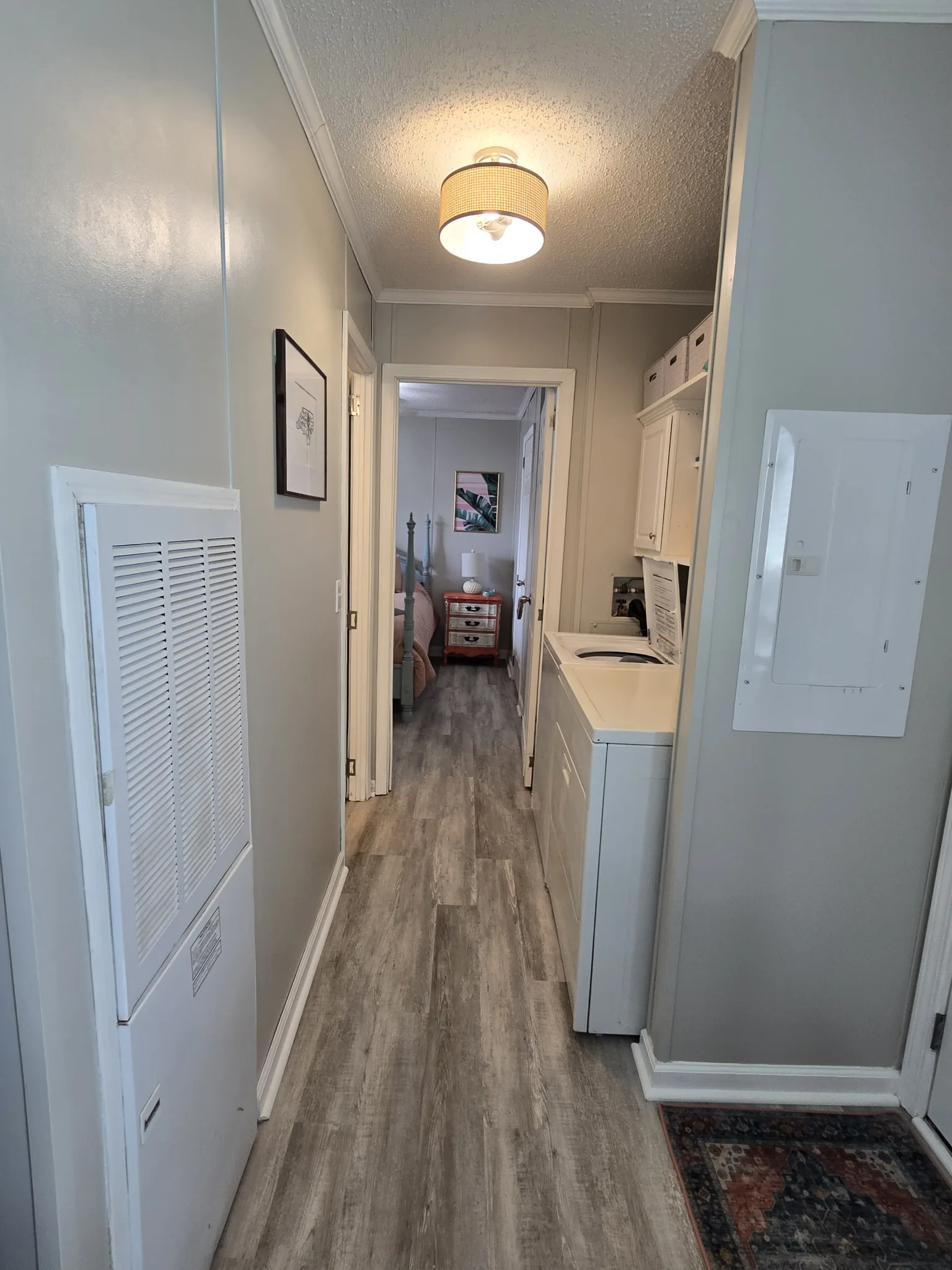 Home has brand new Mohawk LVP flooring, freshly painted, new lighting, high flat ceilings, tiled backsplash in kitchen and bathrooms with an eat in kitchen and bar area. Large, accessible shower in master. Plenty of storage with huge walk in closets in both bedrooms! There is a convenient half bath located in the second bedroom creating individual spaces for each guest.