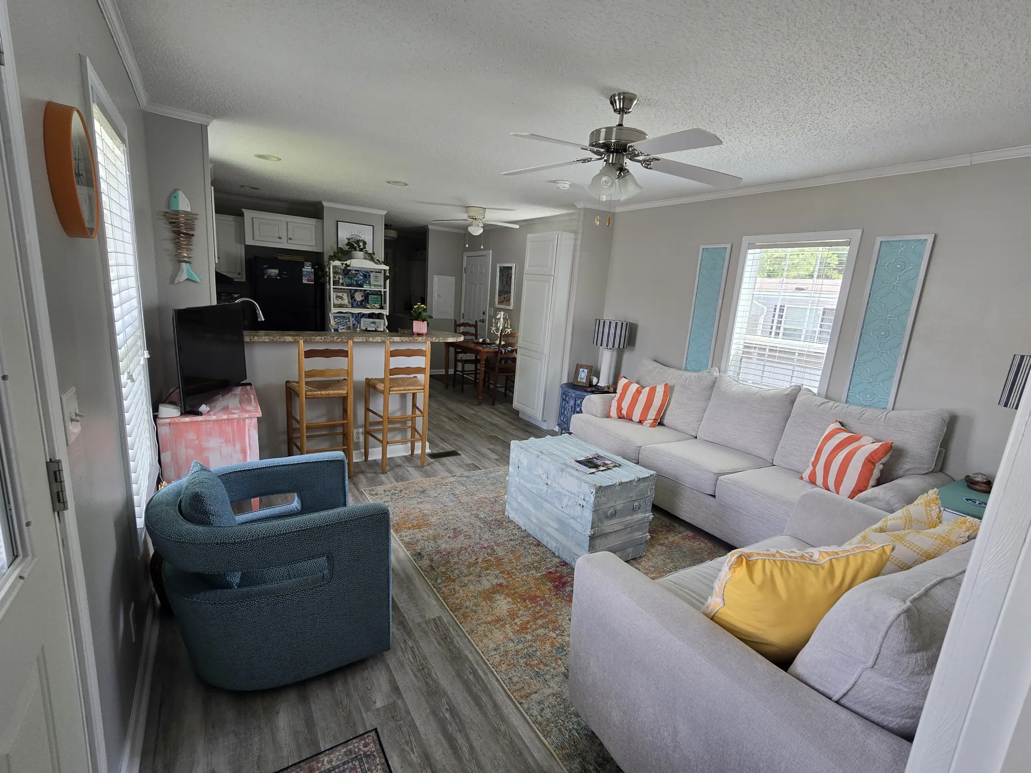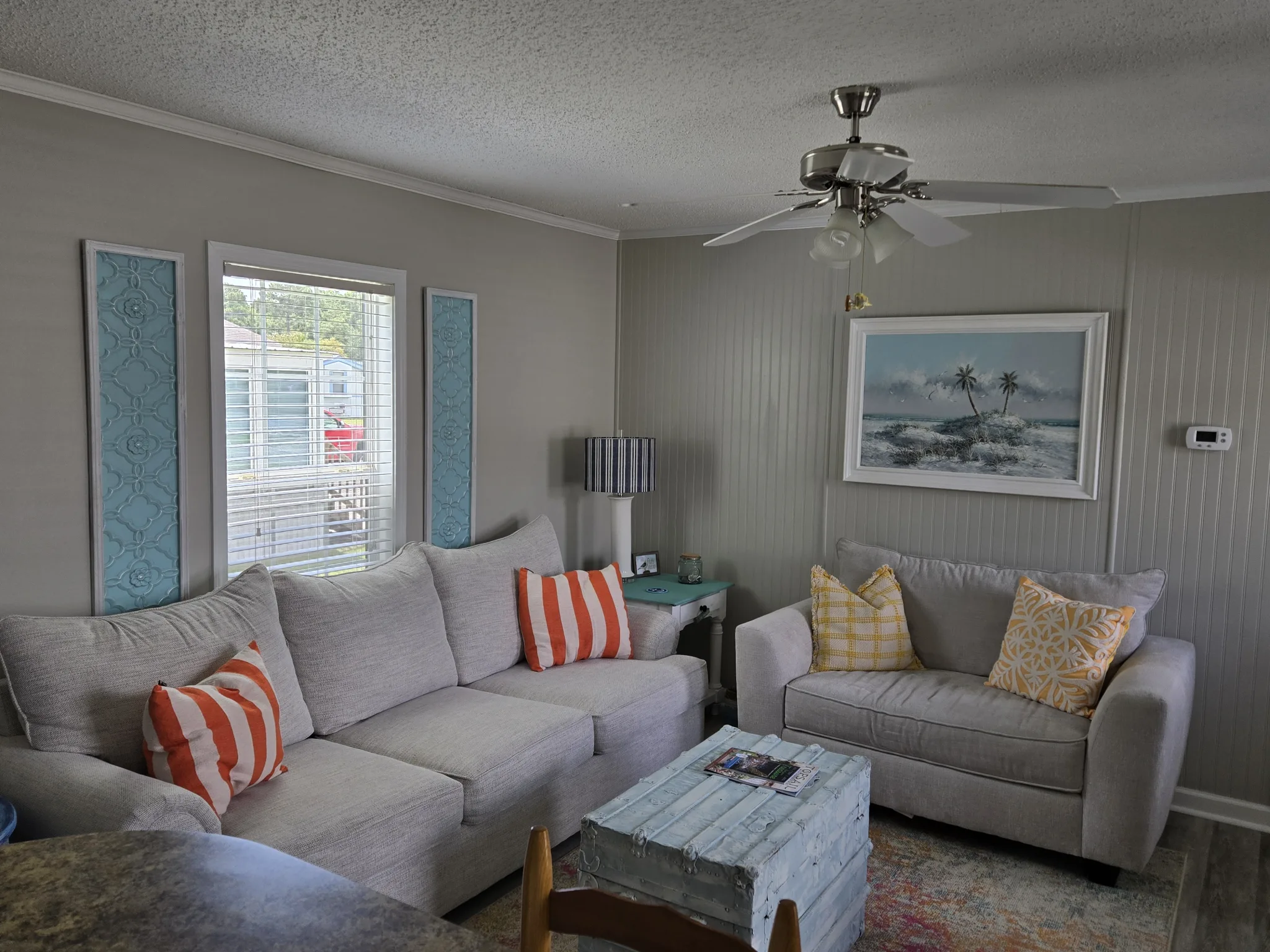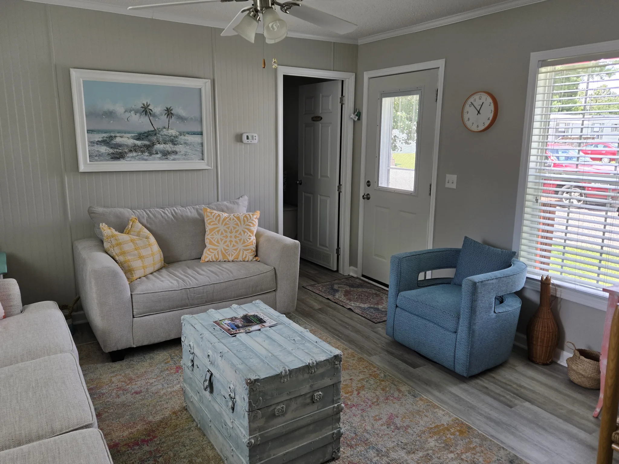 Completely remodeled and gorgeous beach trailer!! Furnished, full of natural light and ready for you! Only 1.5 miles to beach and walking distance to Surf City restaurants, mini-golf, coffee shop, Surf City Recreation, Surf City Skate Park, etc. There’s plenty of warm weather left to enjoy this beauty!
