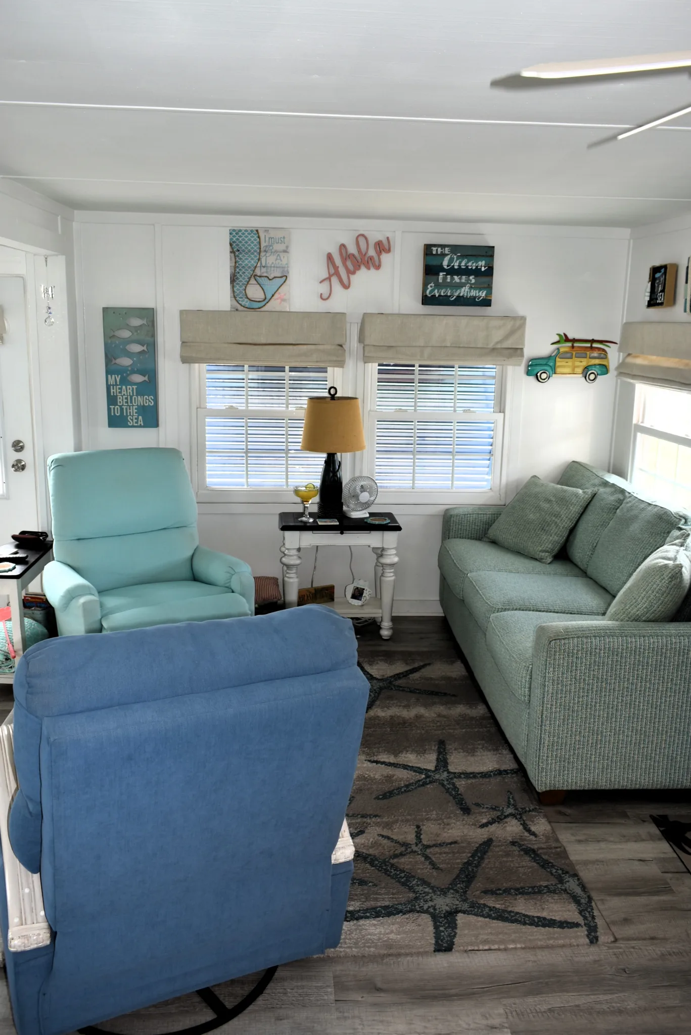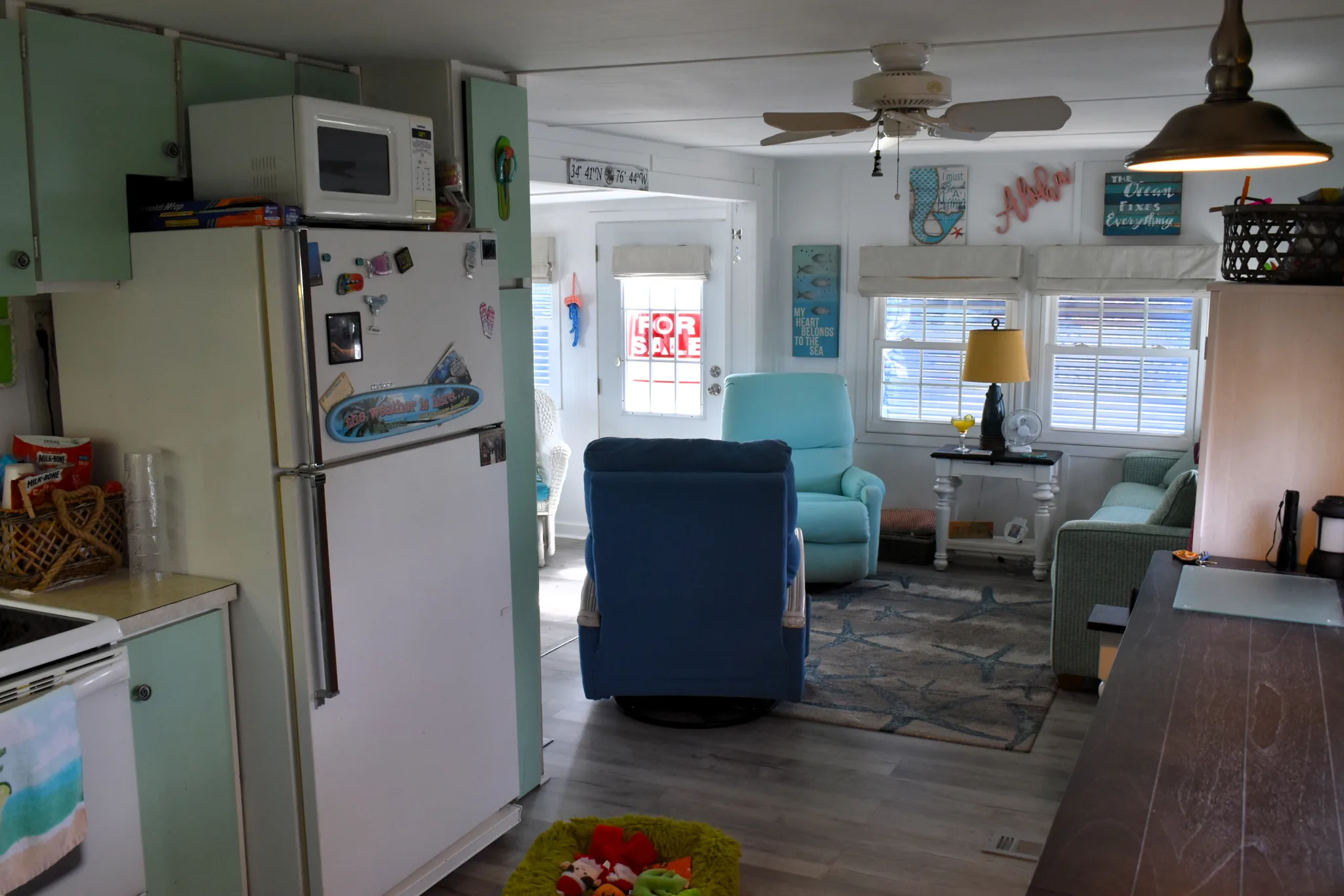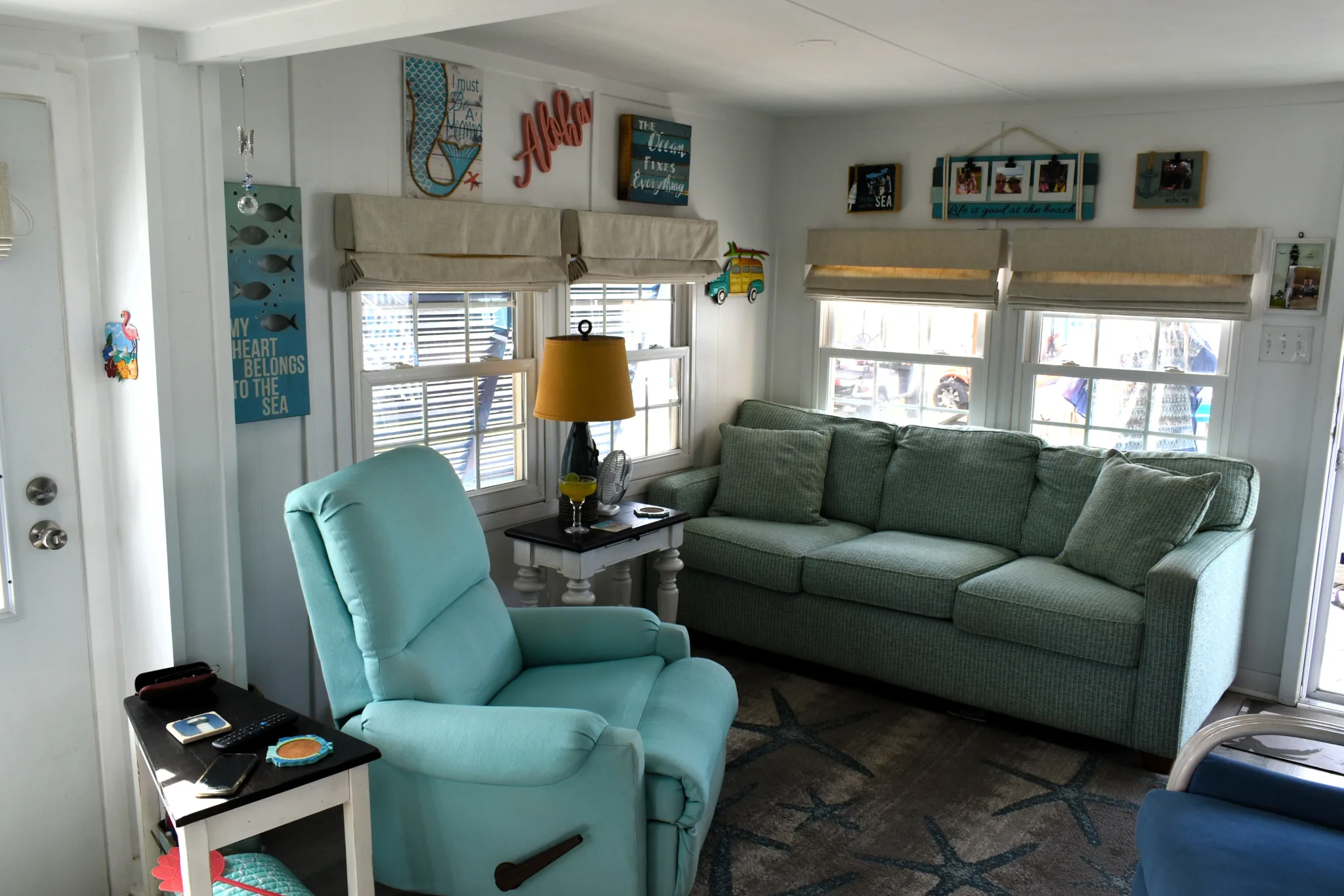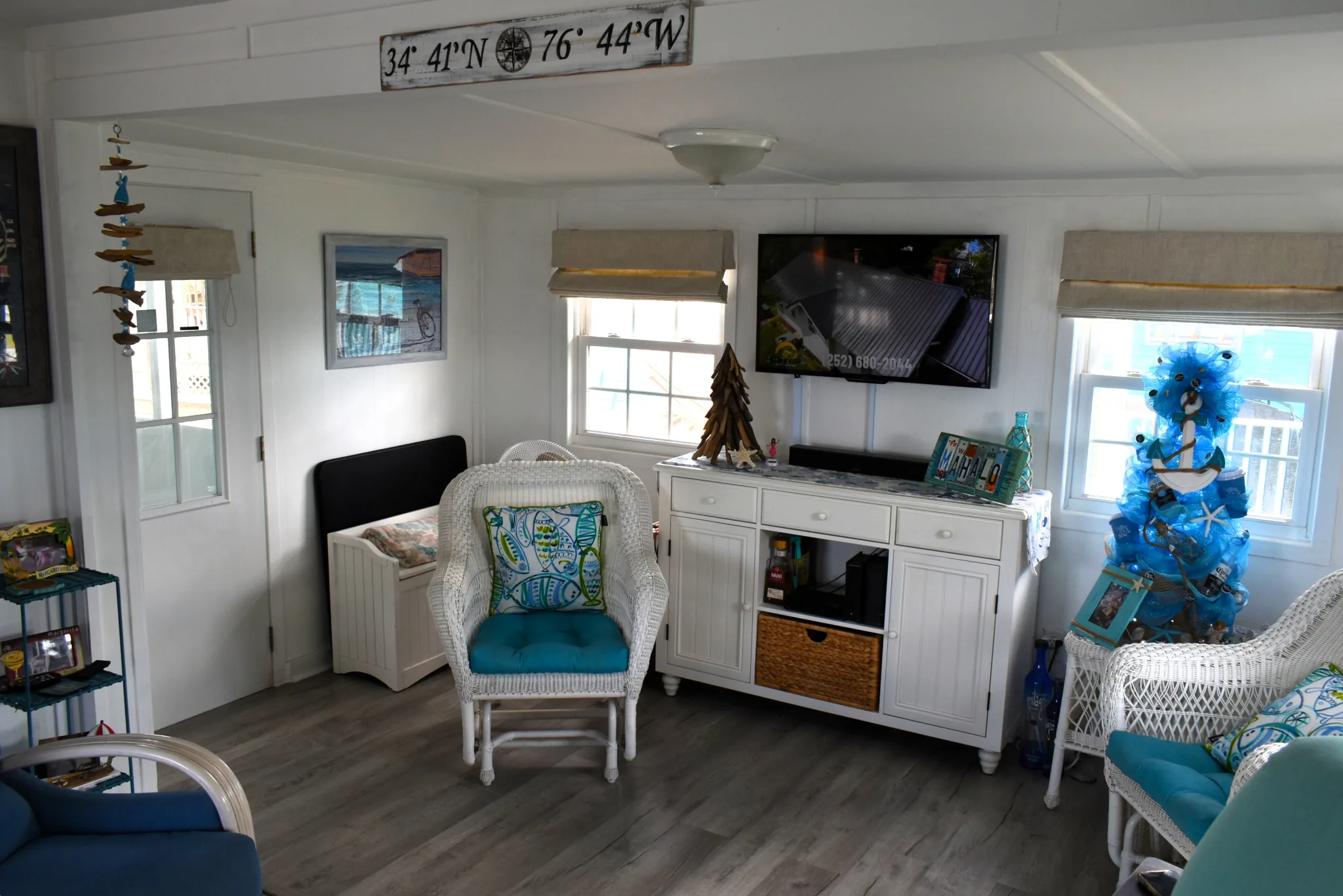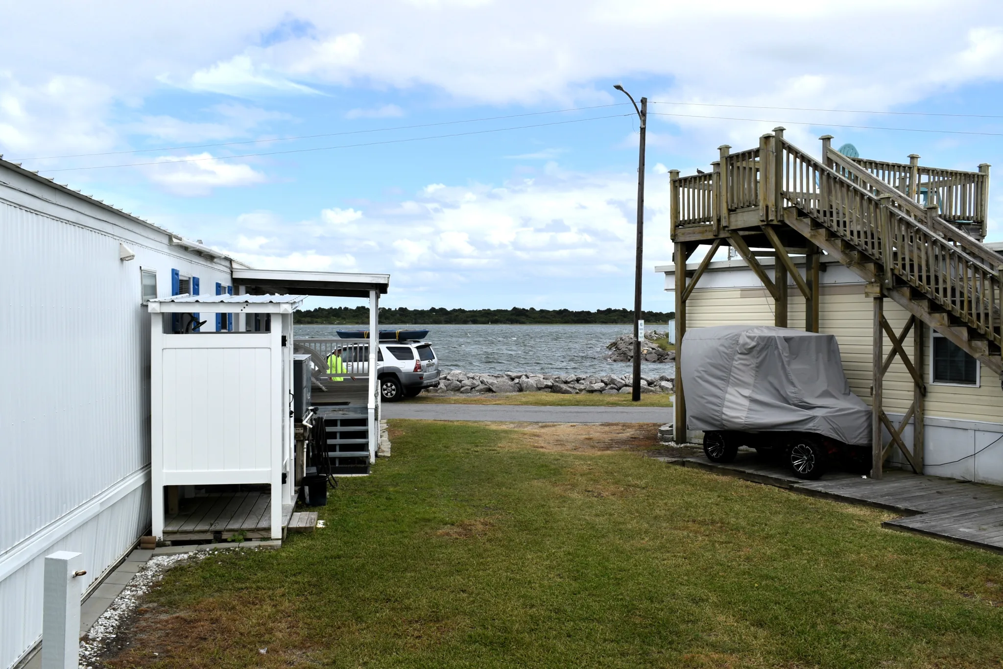 WATER, SAND, AND SUN! JUST ADD YOUR LIFESTYLE! This quaint beach getaway boast beautiful water views, numerous recent upgrades, and even a street-legal golf cart to boot! Located in the highly-desirable Triple S Marina Village, this 2-bedroom, 1-bath home is turnkey ready and just steps from the ocean or your boat! Top deck, front porch, HVAC,and living room floors all replaced within the last 5 years! Enjoy sunrises, sunsets, and panoramic water views from the upper deck or unwind with an evening cocktail on the waterview screened porch! Or hop in your street-legal golf cart for a ride over to the beach or a quick trip to The Circle in Atlantic Beach! Take it anywhere the speed limit is 35 mph or less! In addition, this trailer features a kitchen/living area and sunken den with Pella windows and LVP flooring, high-quality furnishings from Shore Decor in Morehead City, a stack washer/dryer, and cozy front porch when you need to get out of the rain or visit with your neighbors! There is ample parking and plenty of space for two vehicles, as well as an enclosed utility shed designed to allow the golf cart to be parked inside when not in use. This comes fully-furnished with the following exceptions: wicker furniture in den, lawnmower in shed, blue chairs on back porch, card table, outside ice machine, and any personal pictures/items. Some tools may convey as well, but not all. Why waste money on summer vacations when you can have your own slice of paradise anytime you want! Call me today to see this awesome beach “cottage!” Priced at $120K (golf cart valued at $12,000) this home is a great value when compared with other trailers for sale in Triple S! Act fast … it won’t be around long!