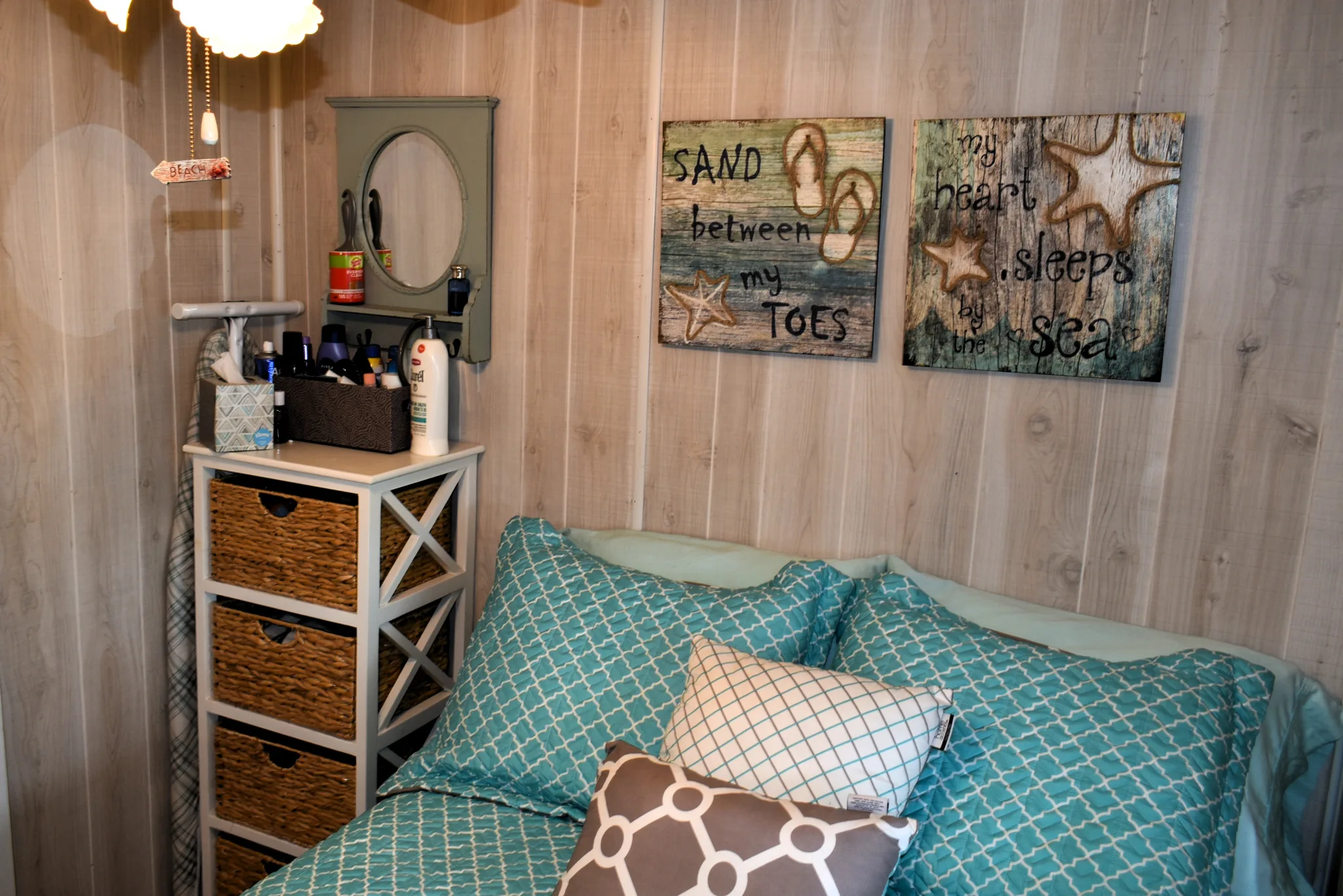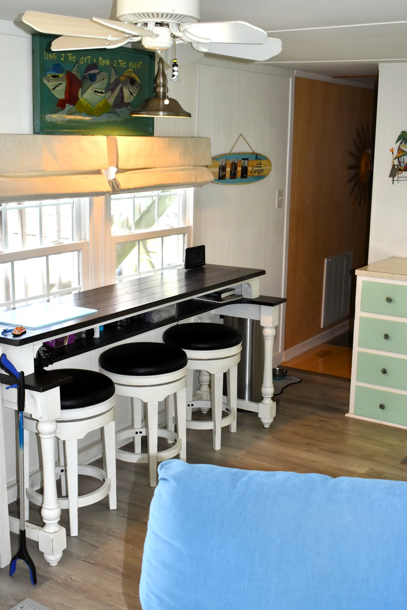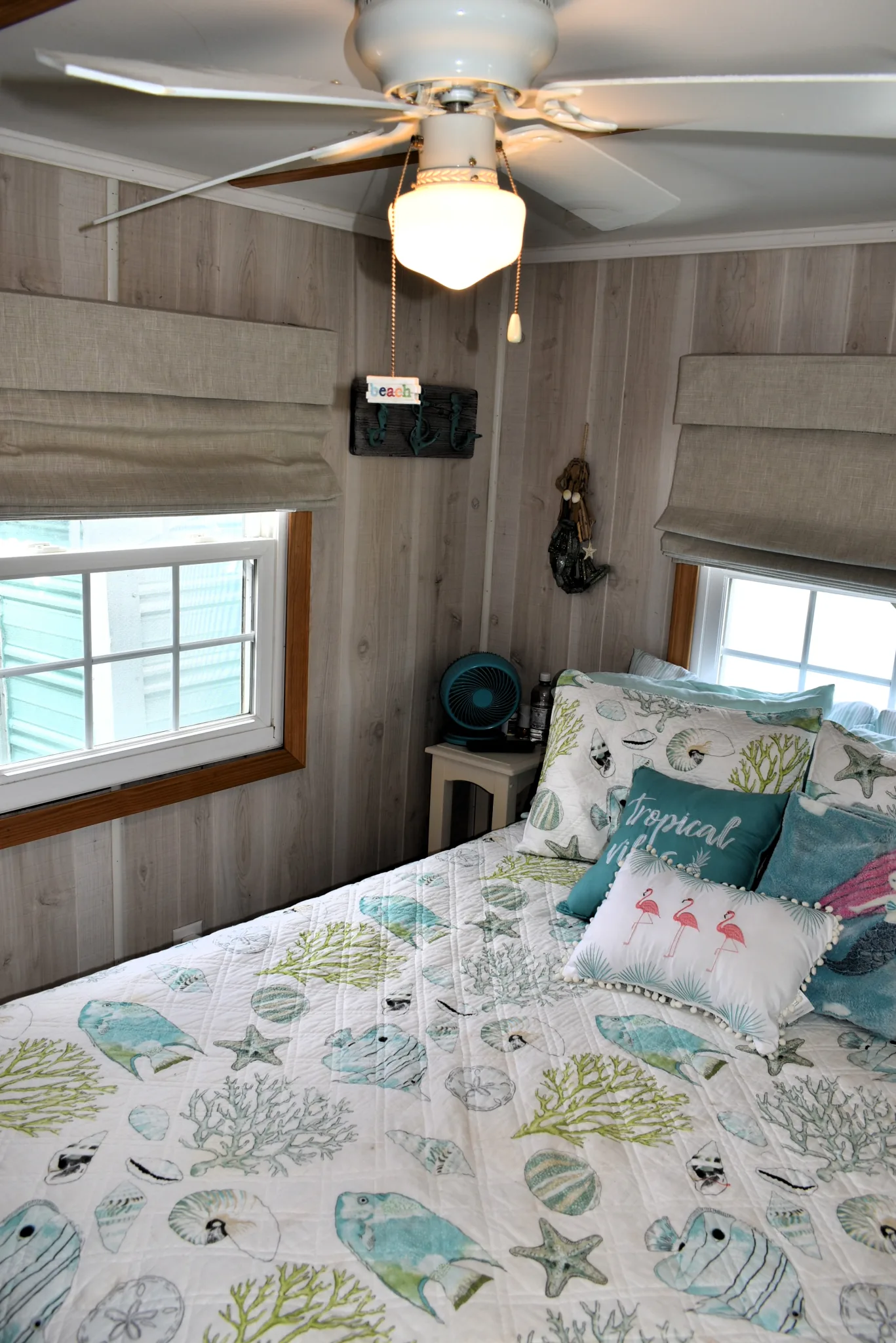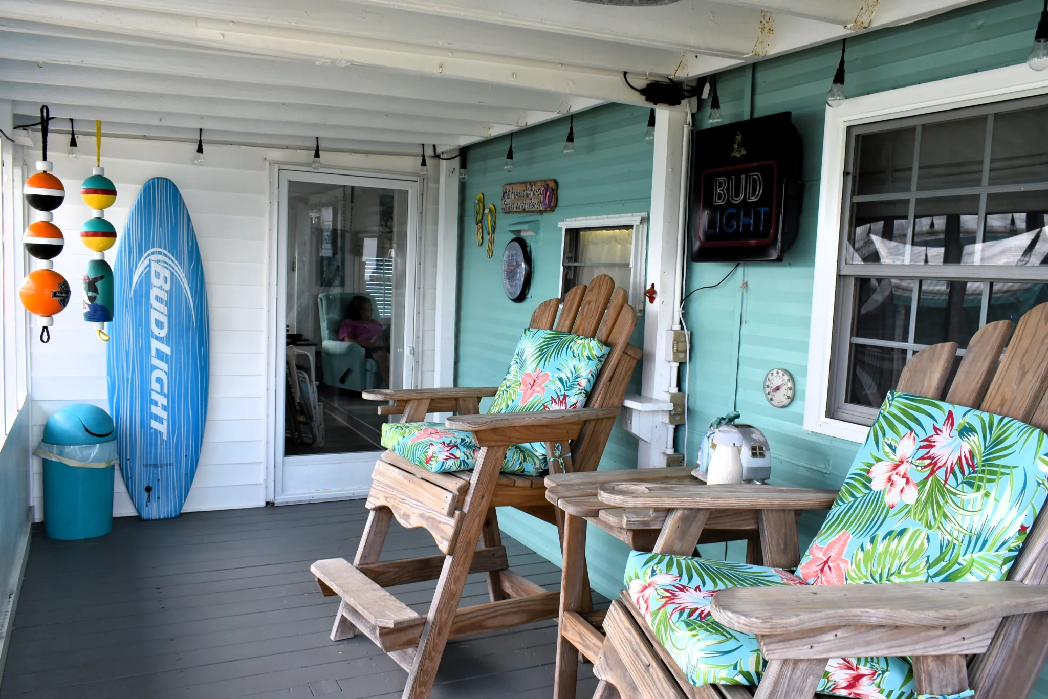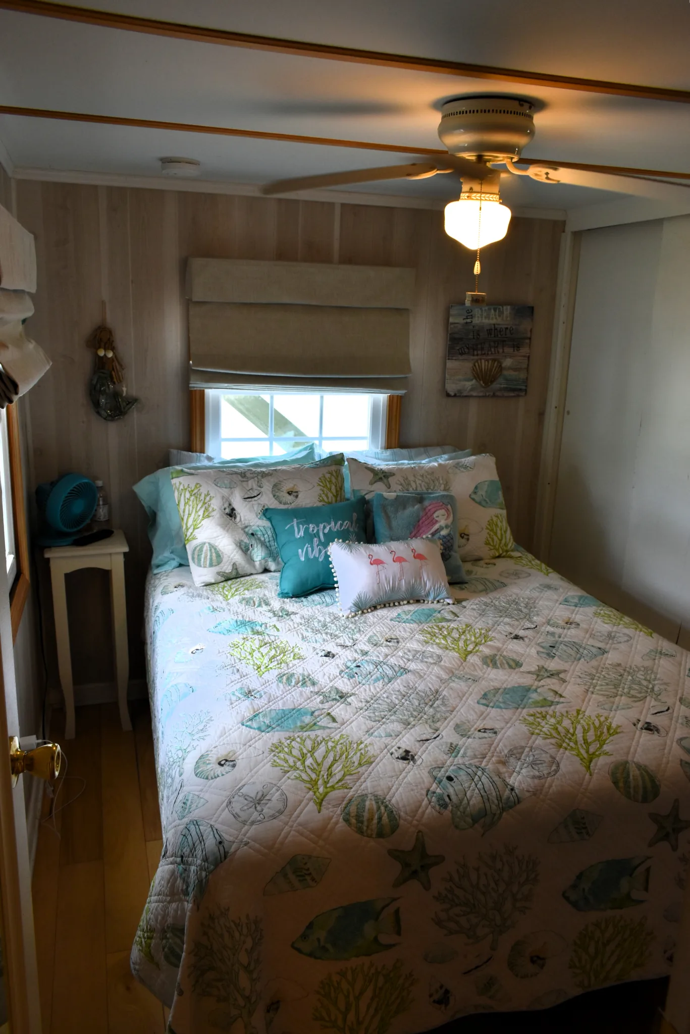 WATER, SAND, AND SUN! JUST ADD YOUR LIFESTYLE! This quaint beach getaway boast beautiful water views, numerous recent upgrades, and even a street-legal golf cart to boot! Located in the highly-desirable Triple S Marina Village, this 2-bedroom, 1-bath home is turnkey ready and just steps from the ocean or your boat! Top deck, front porch, HVAC,and living room floors all replaced within the last 5 years! Enjoy sunrises, sunsets, and panoramic water views from the upper deck or unwind with an evening cocktail on the waterview screened porch! Or hop in your street-legal golf cart for a ride over to the beach or a quick trip to The Circle in Atlantic Beach! Take it anywhere the speed limit is 35 mph or less! In addition, this trailer features a kitchen/living area and sunken den with Pella windows and LVP flooring, high-quality furnishings from Shore Decor in Morehead City, a stack washer/dryer, and cozy front porch when you need to get out of the rain or visit with your neighbors! There is ample parking and plenty of space for two vehicles, as well as an enclosed utility shed designed to allow the golf cart to be parked inside when not in use. This comes fully-furnished with the following exceptions: wicker furniture in den, lawnmower in shed, blue chairs on back porch, card table, outside ice machine, and any personal pictures/items. Some tools may convey as well, but not all. Why waste money on summer vacations when you can have your own slice of paradise anytime you want! Call me today to see this awesome beach “cottage!” Priced at $120K (golf cart valued at $12,000) this home is a great value when compared with other trailers for sale in Triple S! Act fast … it won’t be around long!