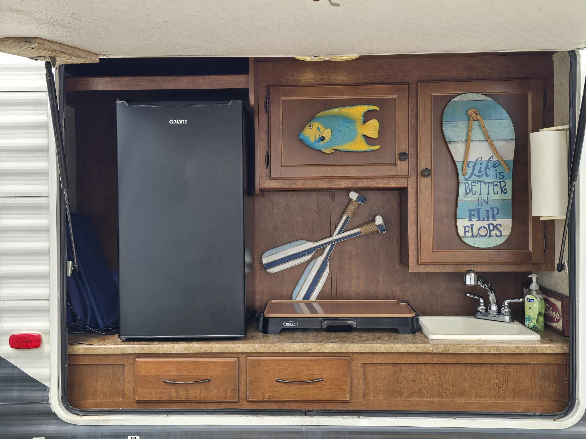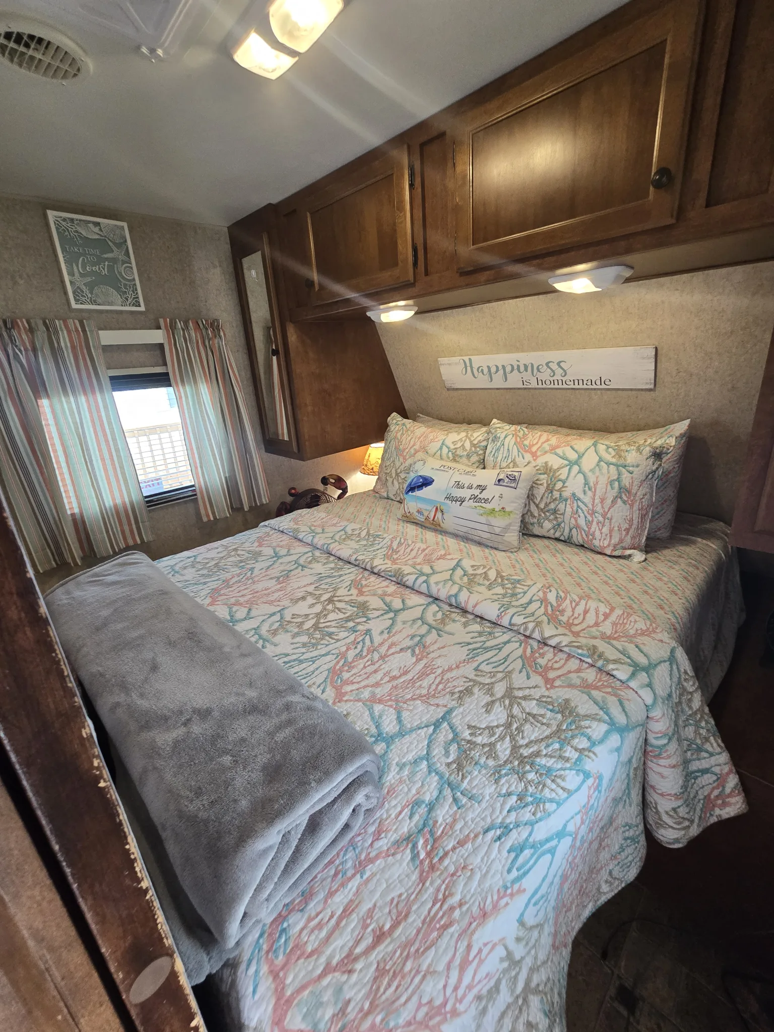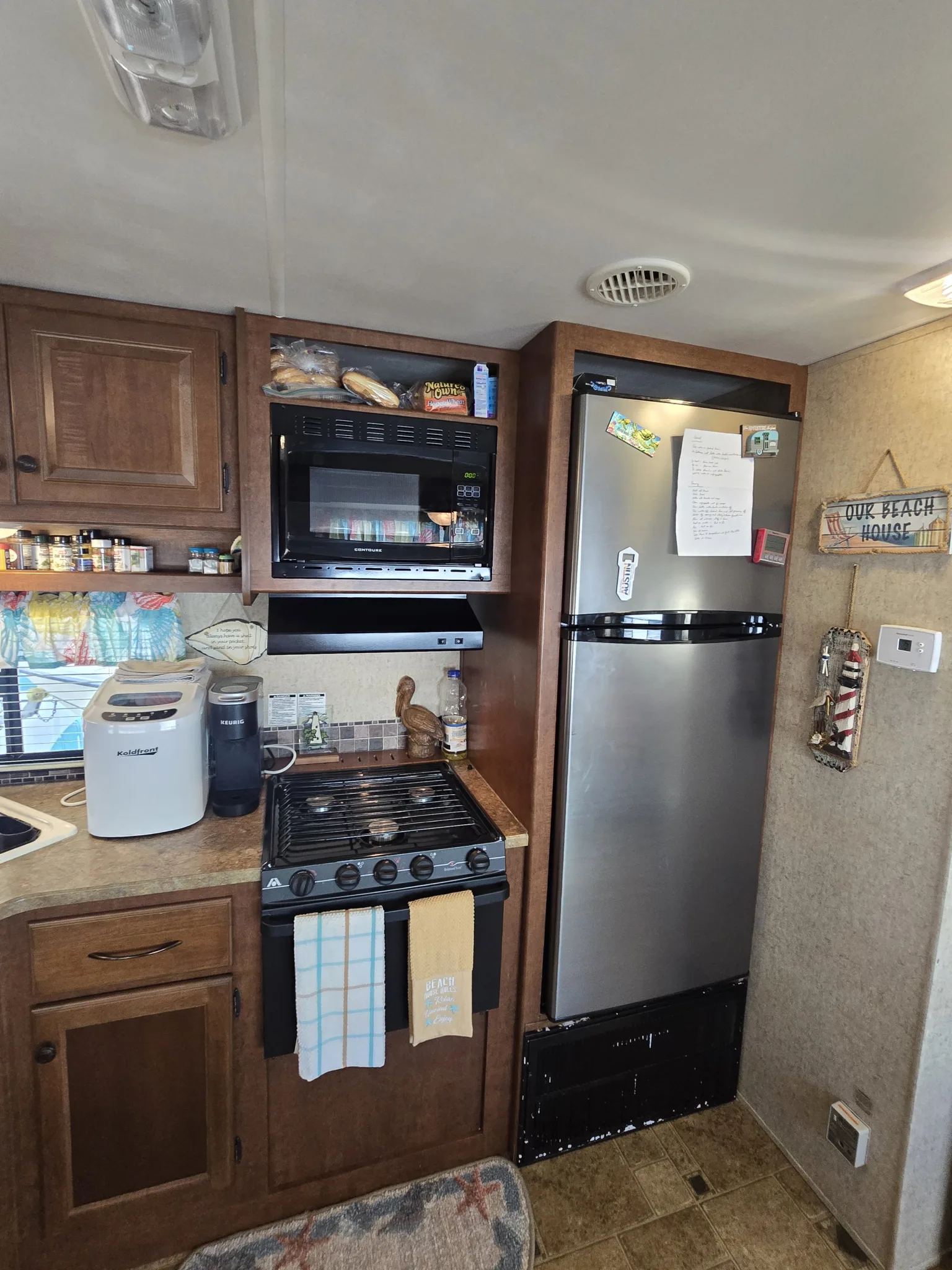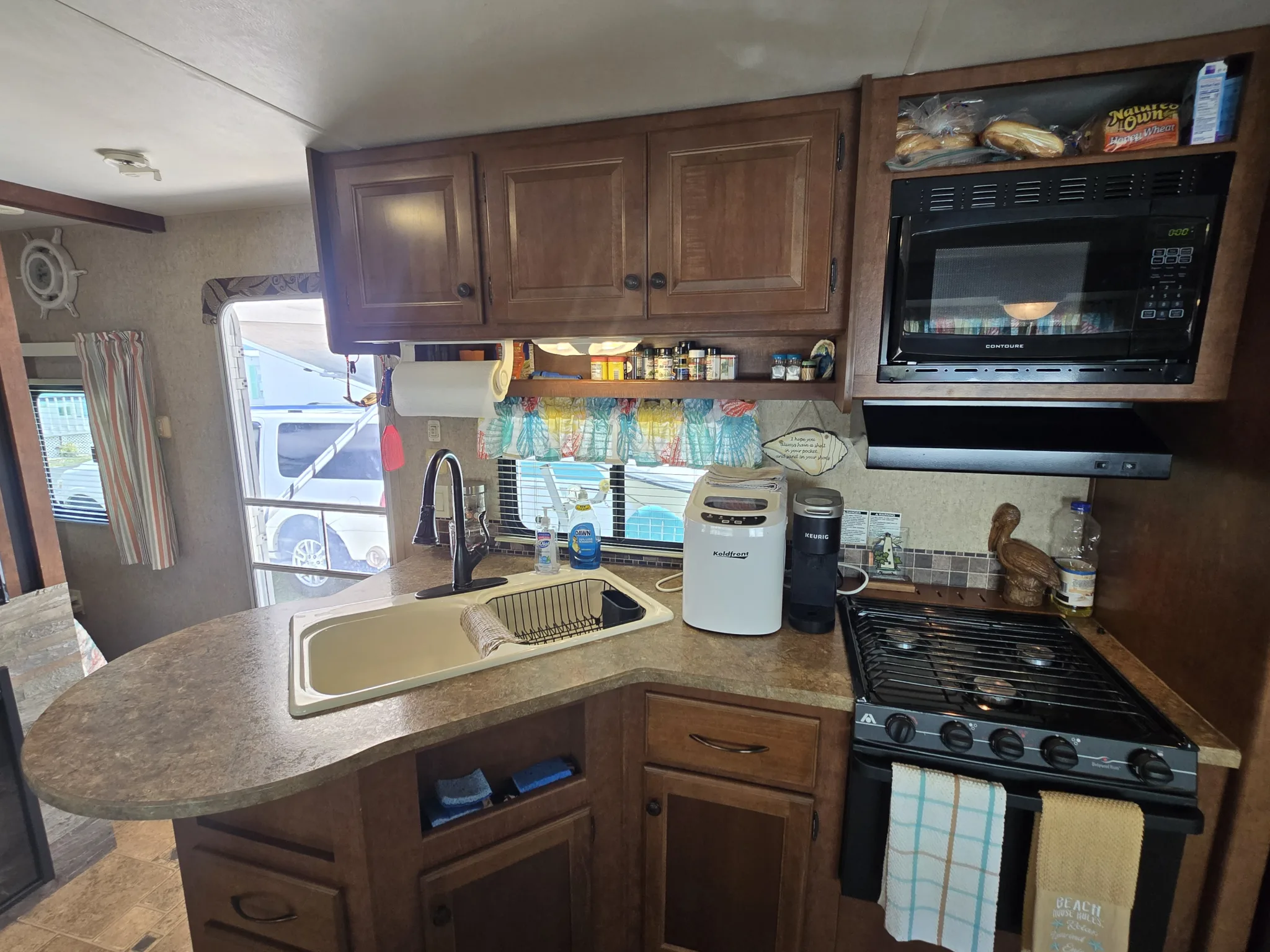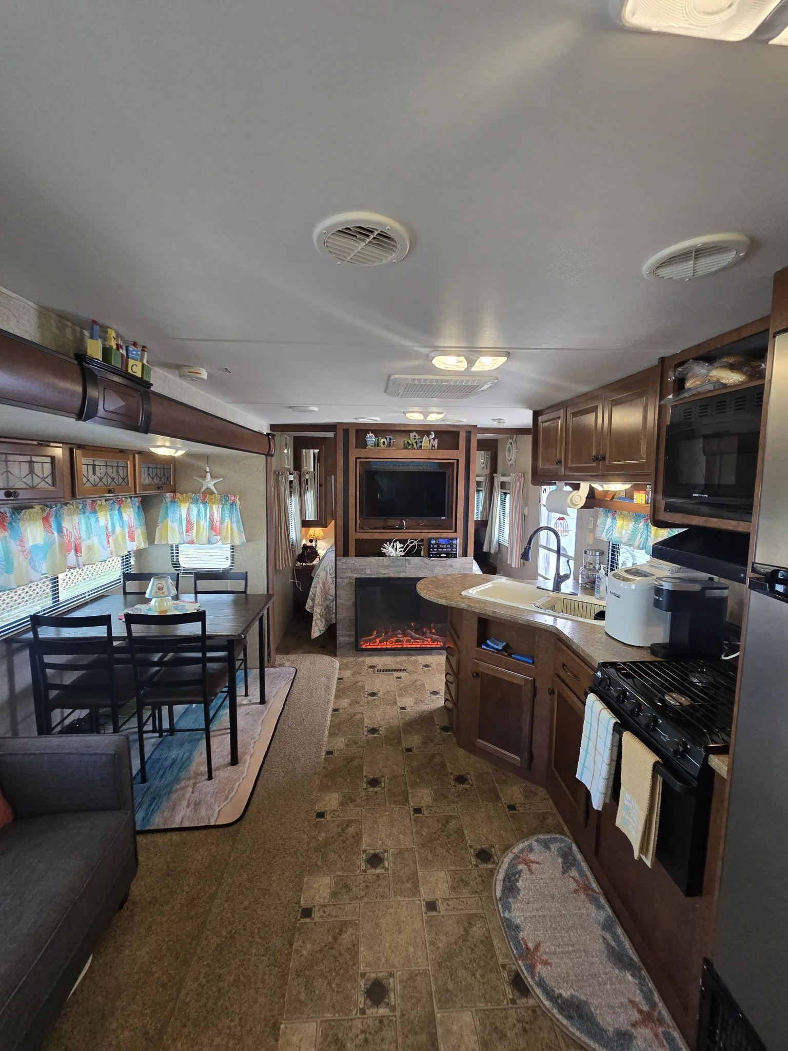Well cared for 2012 32 ft Prowler camper on rented lot N28 in Oceanfront Court Salter Path. Spacious 2 bedroom with front queen, rear full and bunk. Couch also makes a bed. Sleeps 7. Many upgrades in the past few years. Dual air conditioners. Rear ac replaced last year. Refrigerator replaced with larger one last year. Has house toilet and vanity in bathroom. House furniture throughout. Fireplace and TV in living room are new. Barn and outdoor shower built summer of 2022. Deck built within past few years. Awning summer of 2021. Has built in stereo with indoor and outdoor speakers and Bluetooth. Stove oven and microwave. Comes fully furnished with some items. Lot rent currently 6650.00 paid up through June 01, 2026. Rent includes water, sewer and trash. Park has private ocean access, private pier and boat ramp on Sound side. One of the only parks on the island with Ocean and Sound access from within the park. ***No dogs or golf carts allowed*** Buyer must be approved by park. Motivated seller.