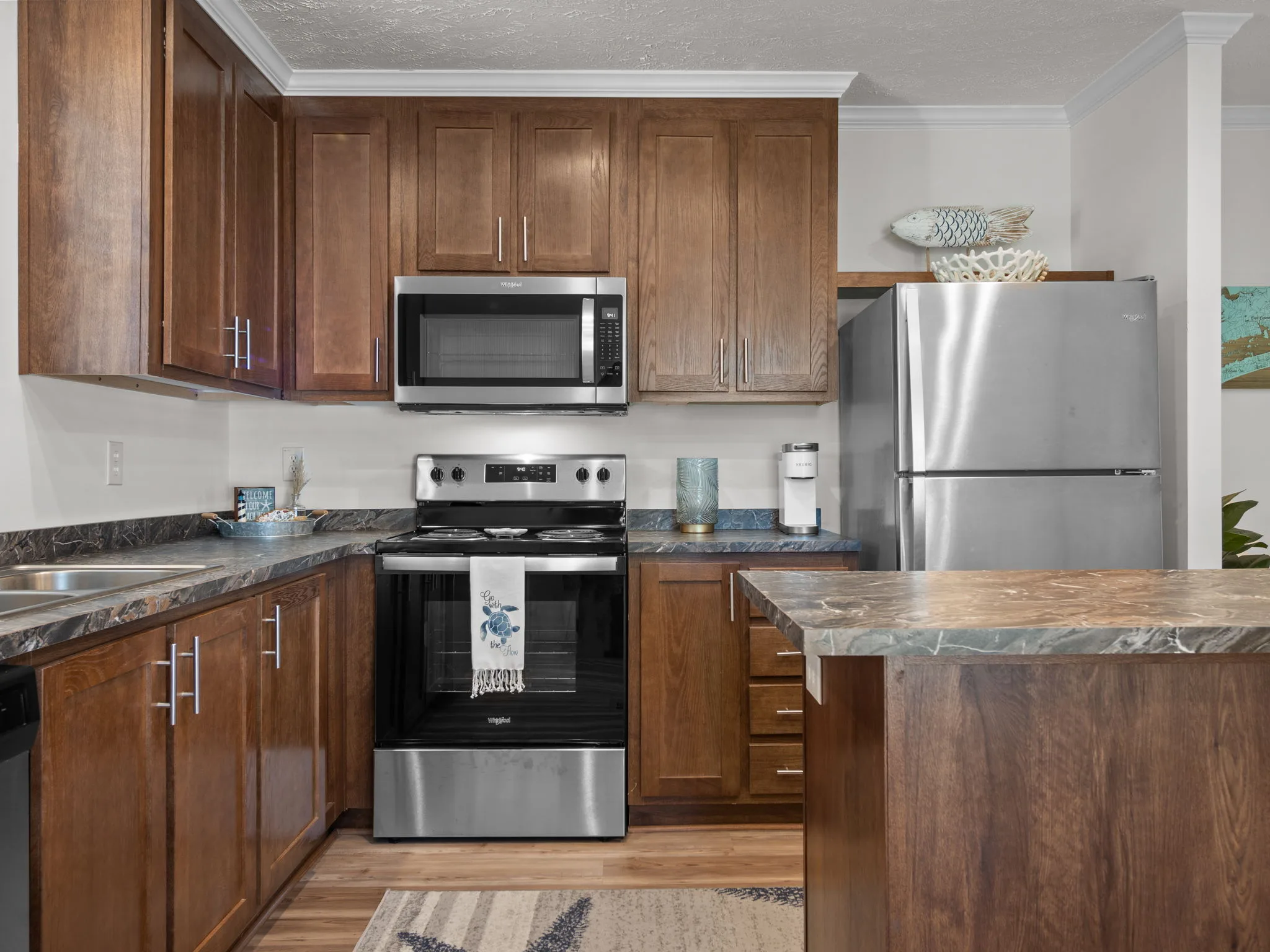 Your Turnkey Emerald Isle Escape! Experience the best of coastal living in this fully furnished 2-bedroom, 2-bath retreat, designed for effortless island life. Start your mornings on the covered front porch, coffee in hand, listening to the waves and feeling the salty ocean breeze.